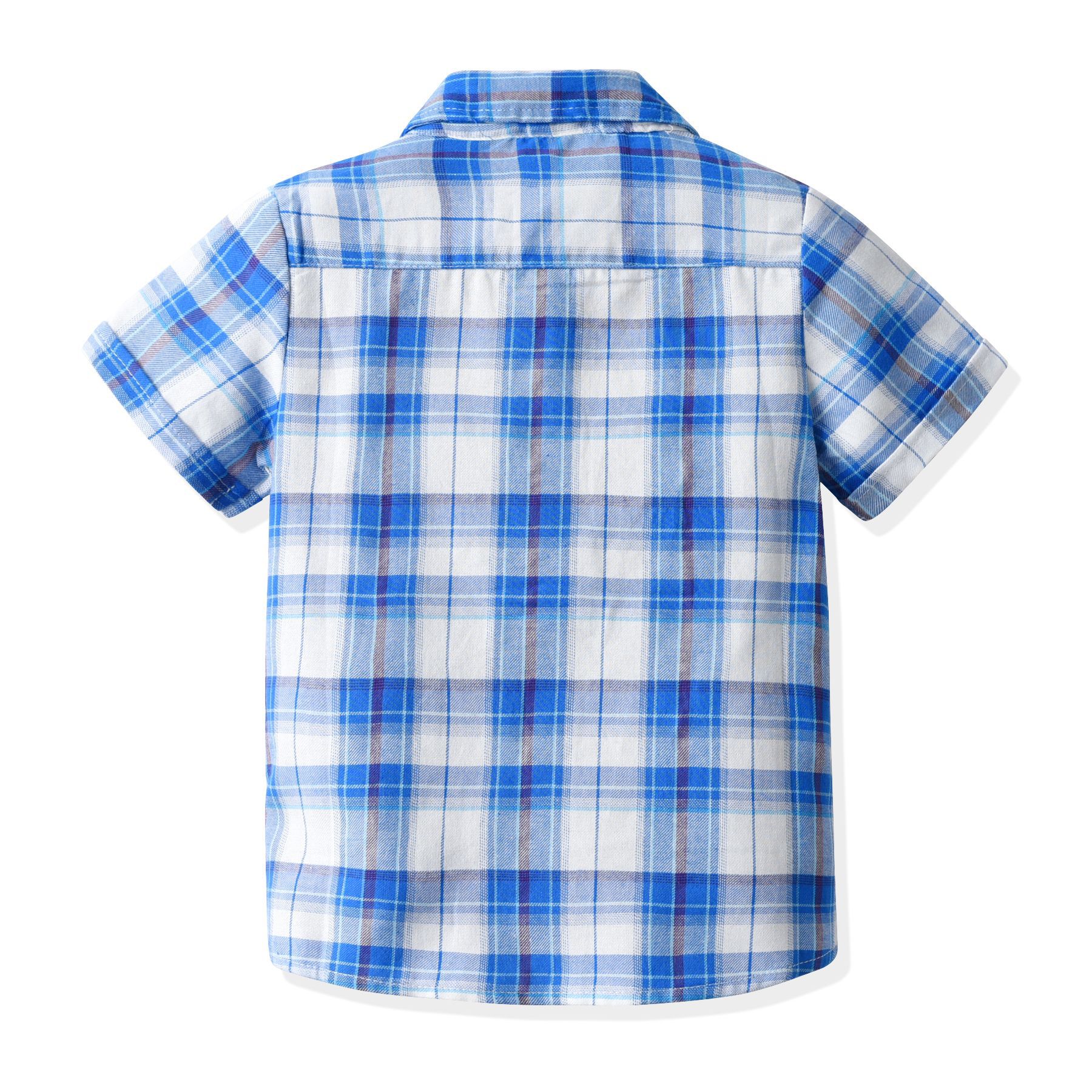 크로스 보더 2023 유럽과 미국 소년 여름 반팔 셔츠 격자 무늬 옷깃 단추 원피스 어린이 셔츠