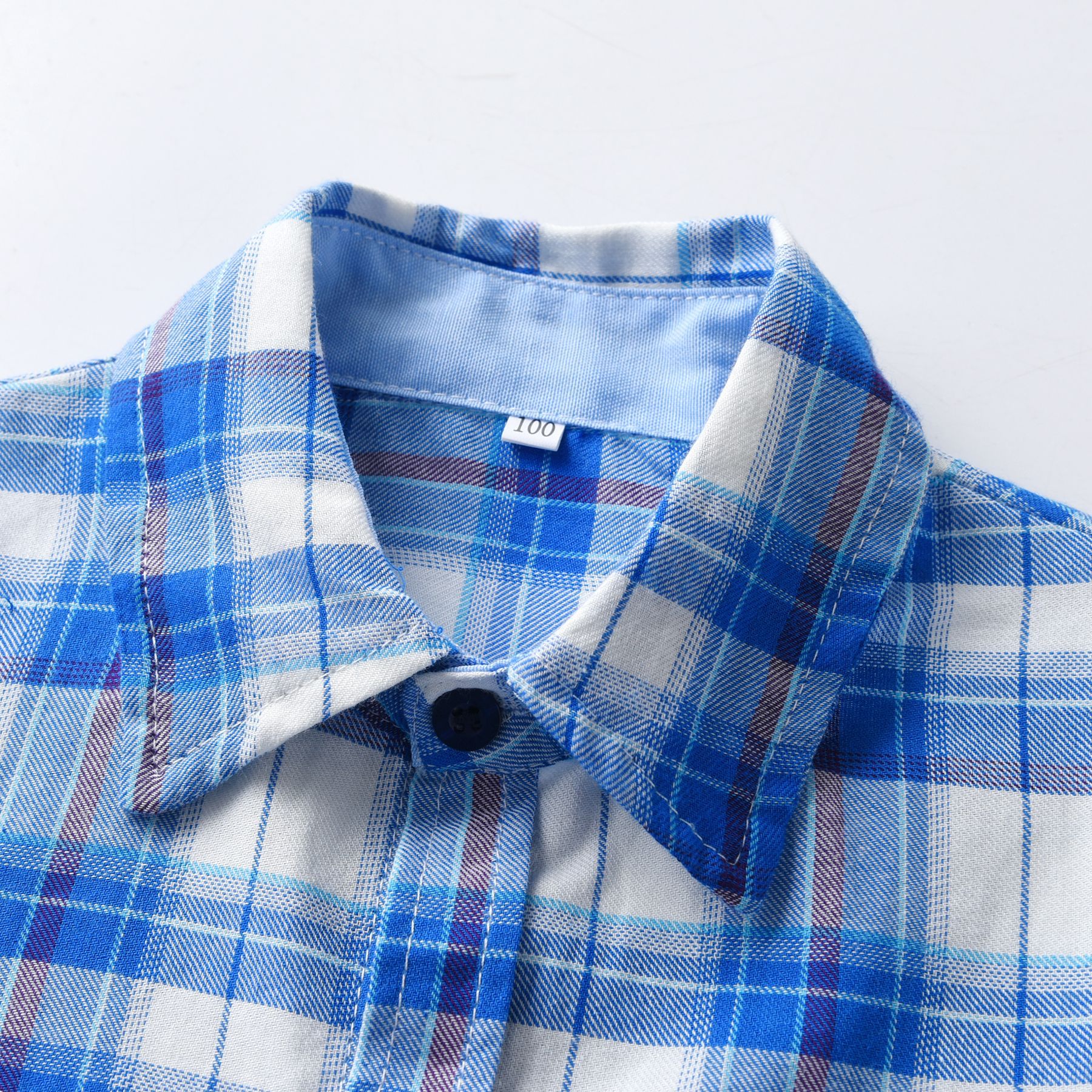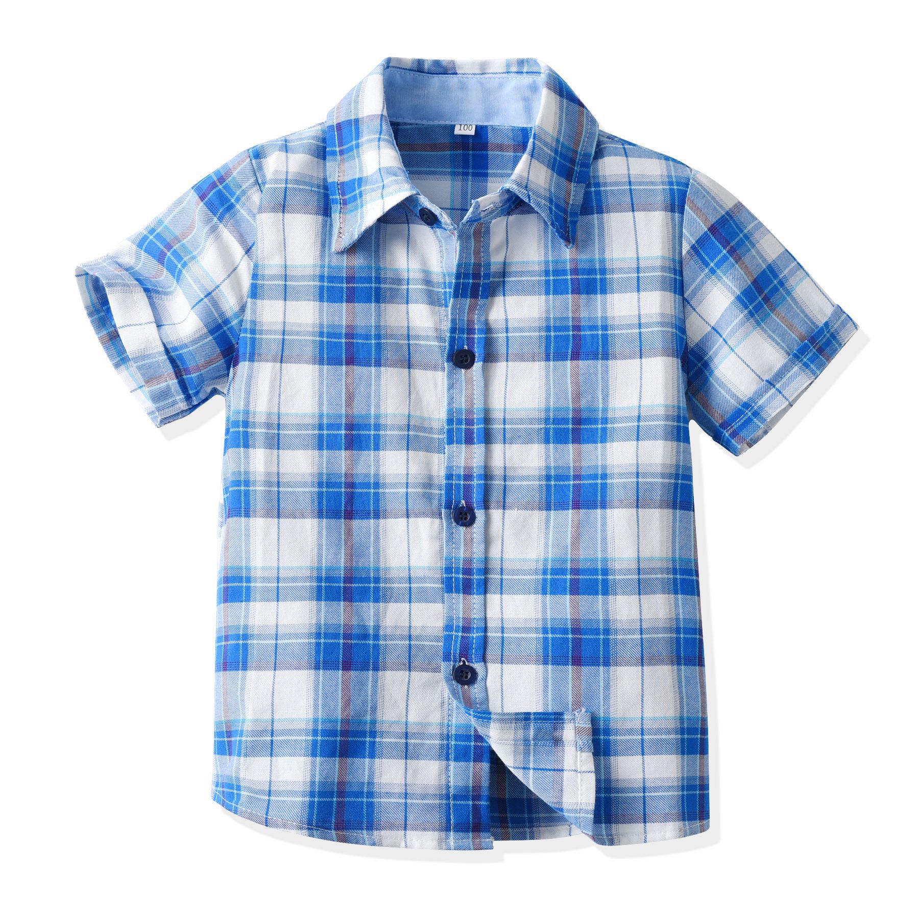 크로스 보더 2023 유럽과 미국 소년 여름 반팔 셔츠 격자 무늬 옷깃 단추 원피스 어린이 셔츠스토어 가기