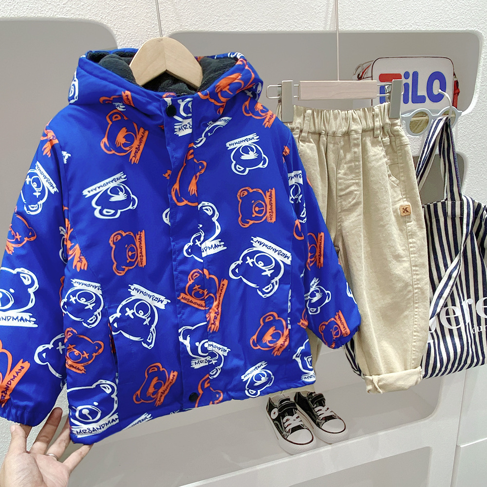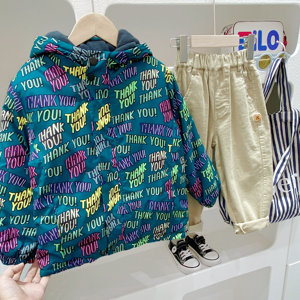 2023 소년과 소녀 아기를위한 겨울 새 아동용 패딩 코튼 패딩 재킷 유행 오스트리아 곡물 벨벳 따뜻한 후드 코트 위 옷