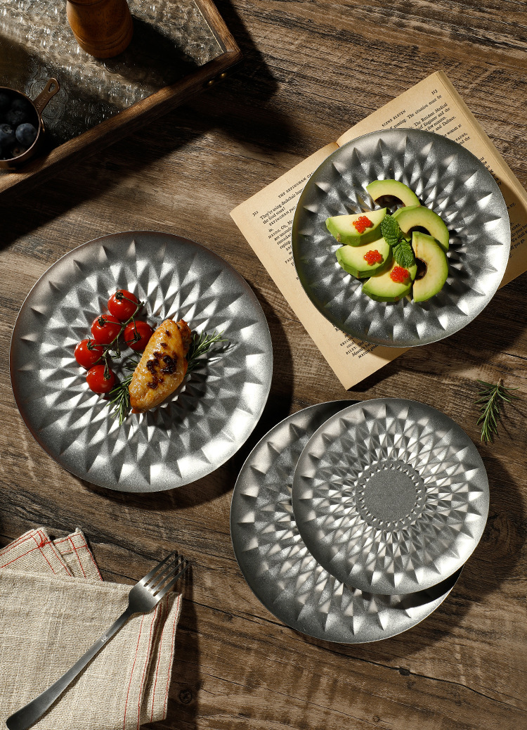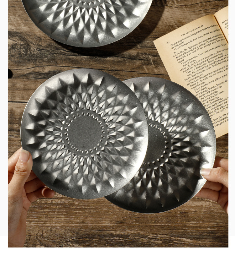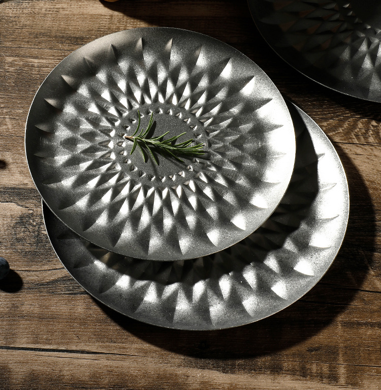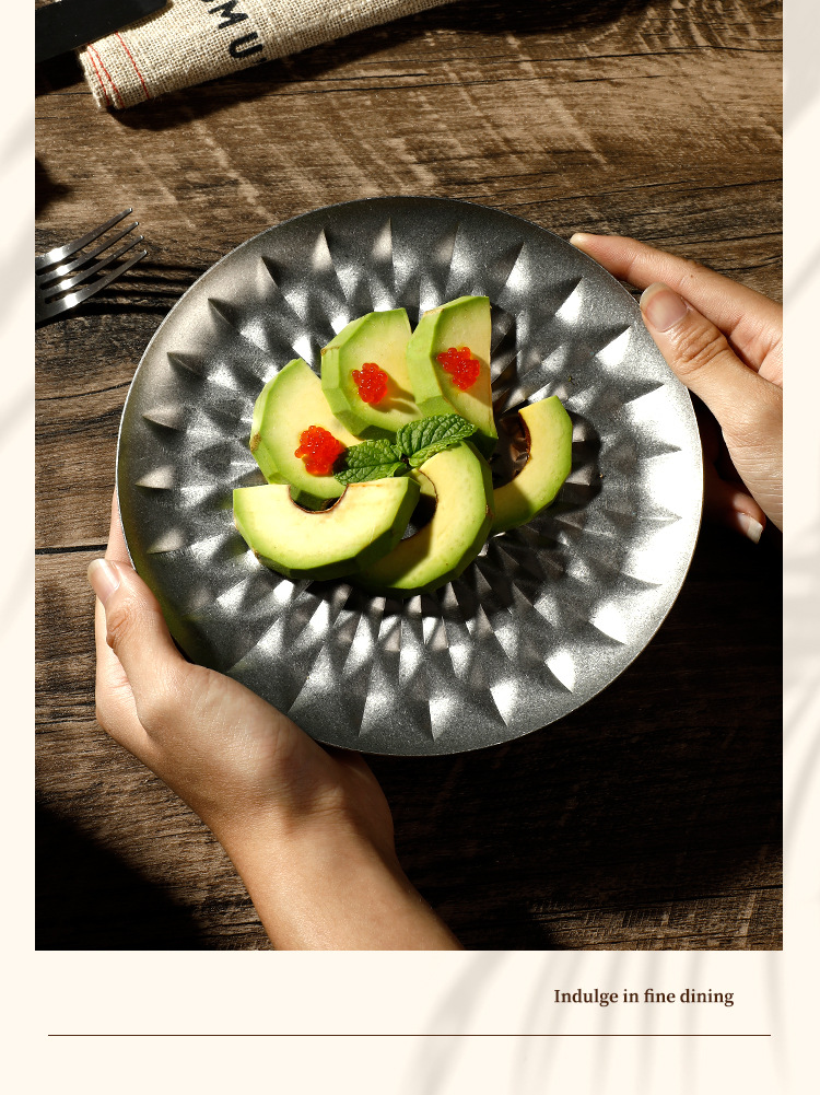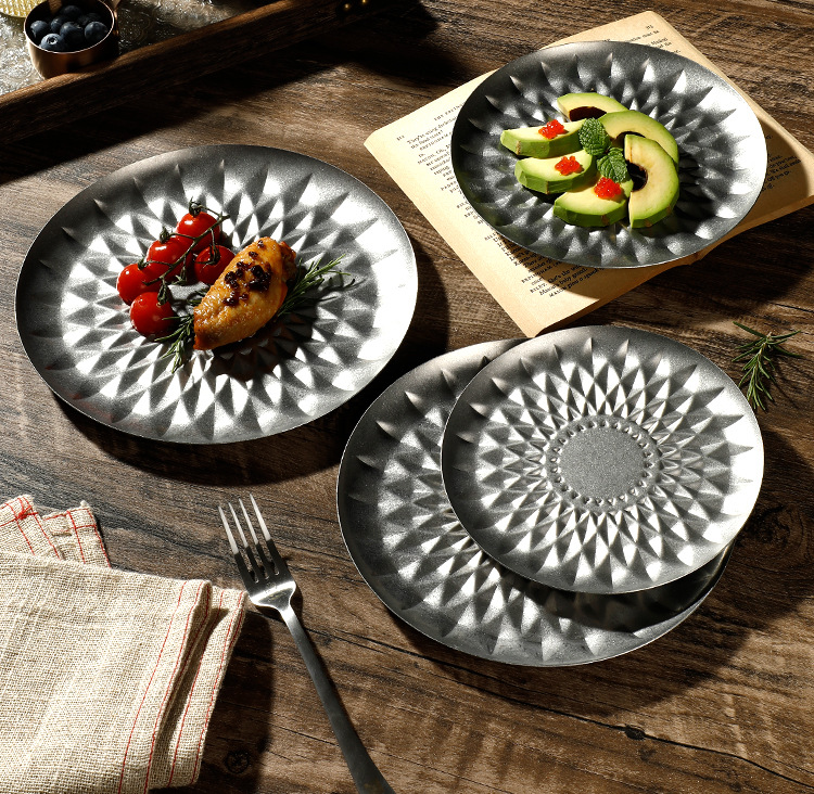 레트로 스타일 다이아몬드 플레이트 하이 컬러 가치 과일 플레이트 스테인레스 스틸 크리에이티브 양각 디스크 레스토랑 호텔 상업용 플레이트