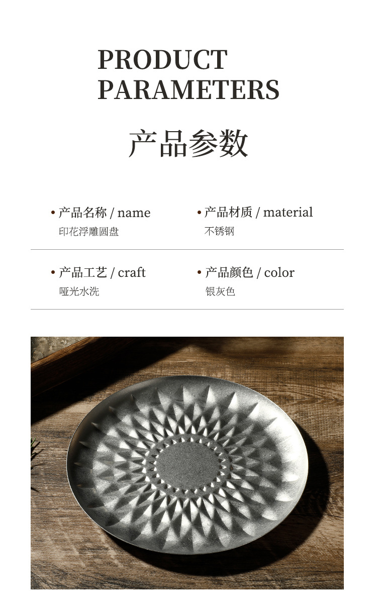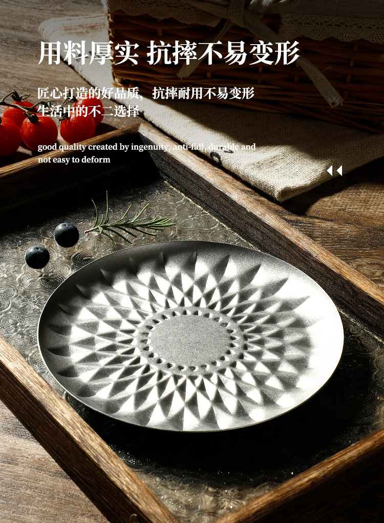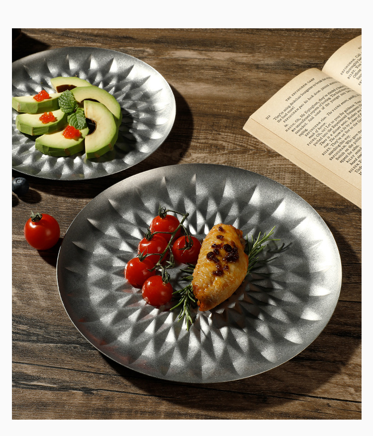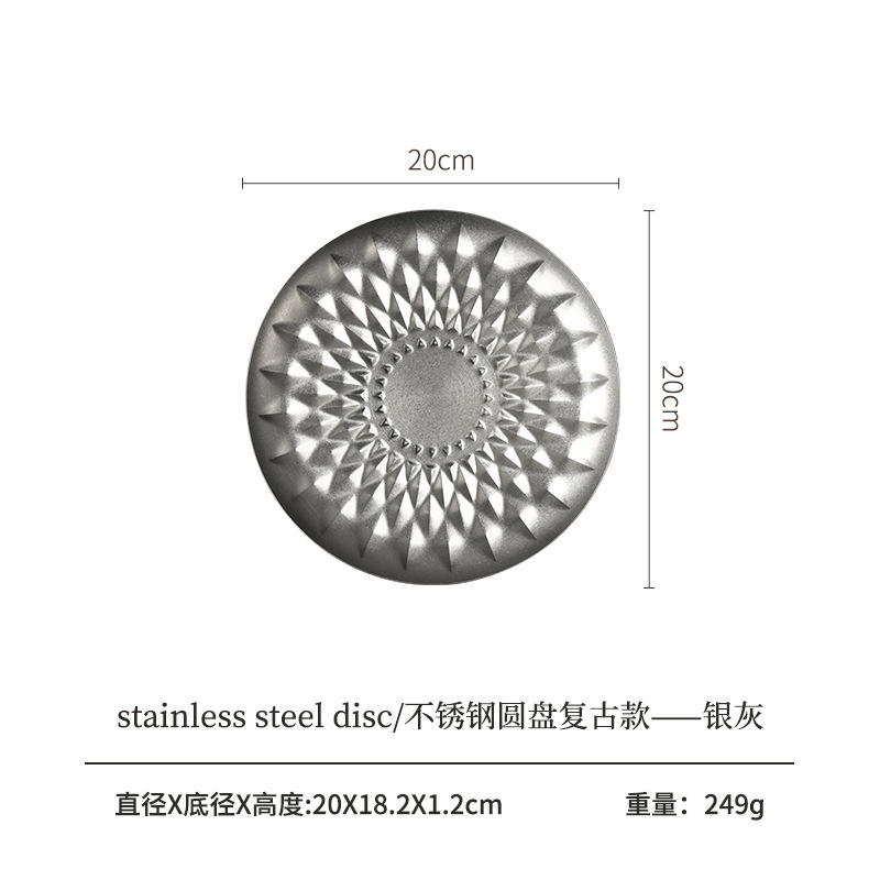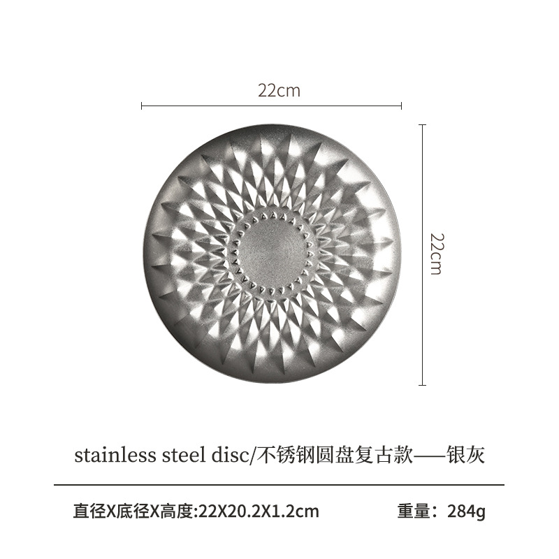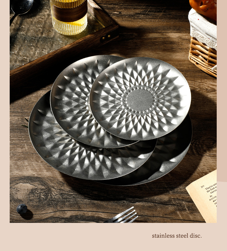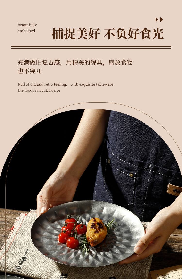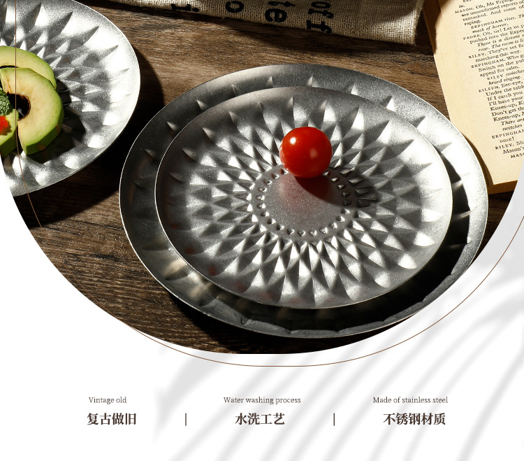 레트로 스타일 다이아몬드 플레이트 하이 컬러 가치 과일 플레이트 스테인레스 스틸 크리에이티브 양각 디스크 레스토랑 호텔 상업용 플레이트스토어 가기