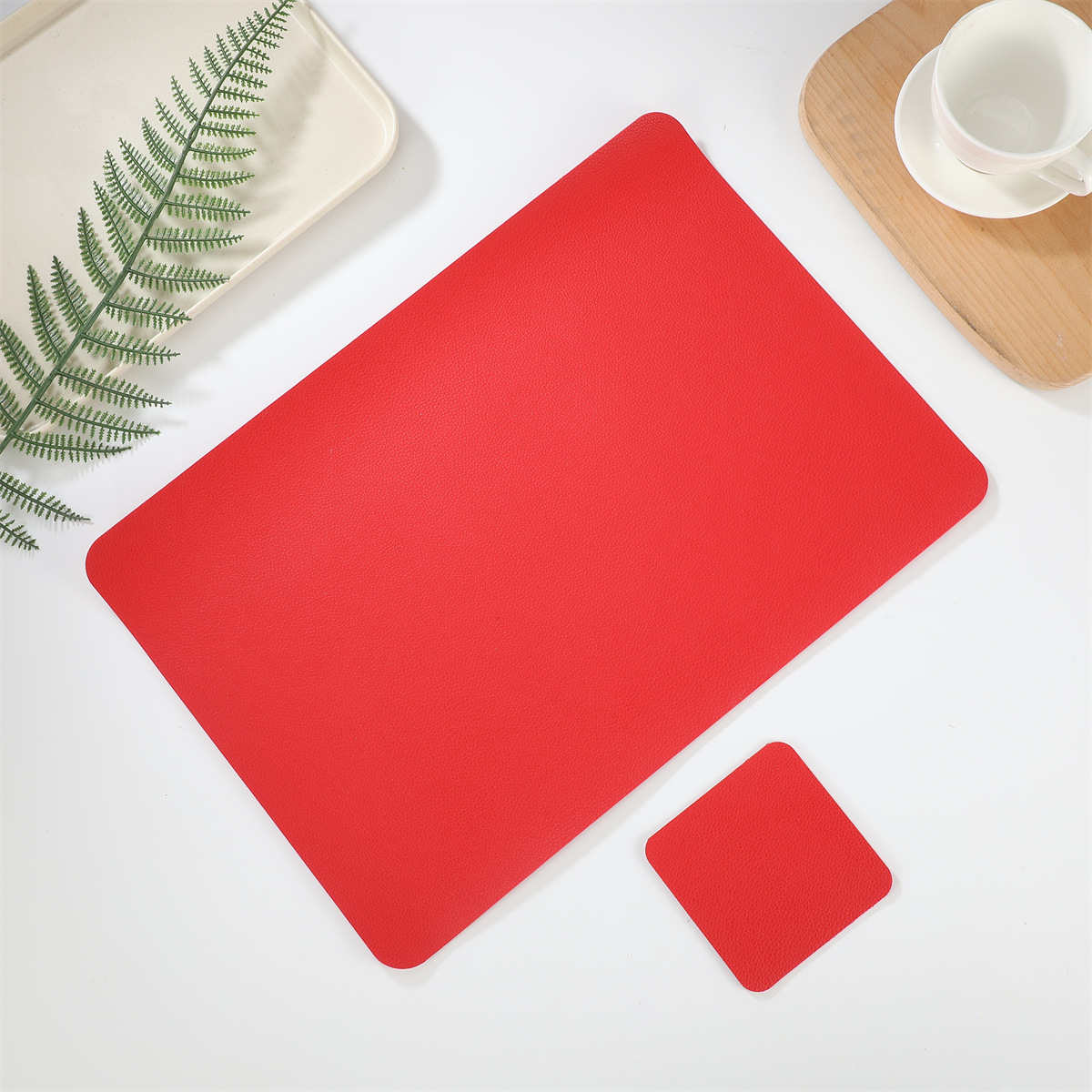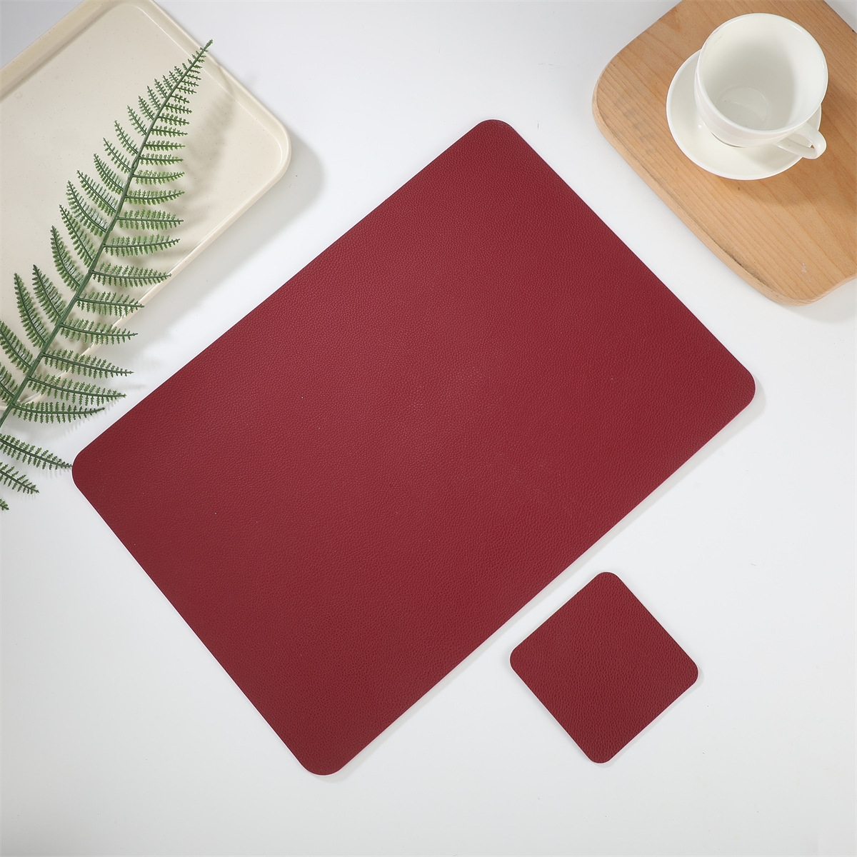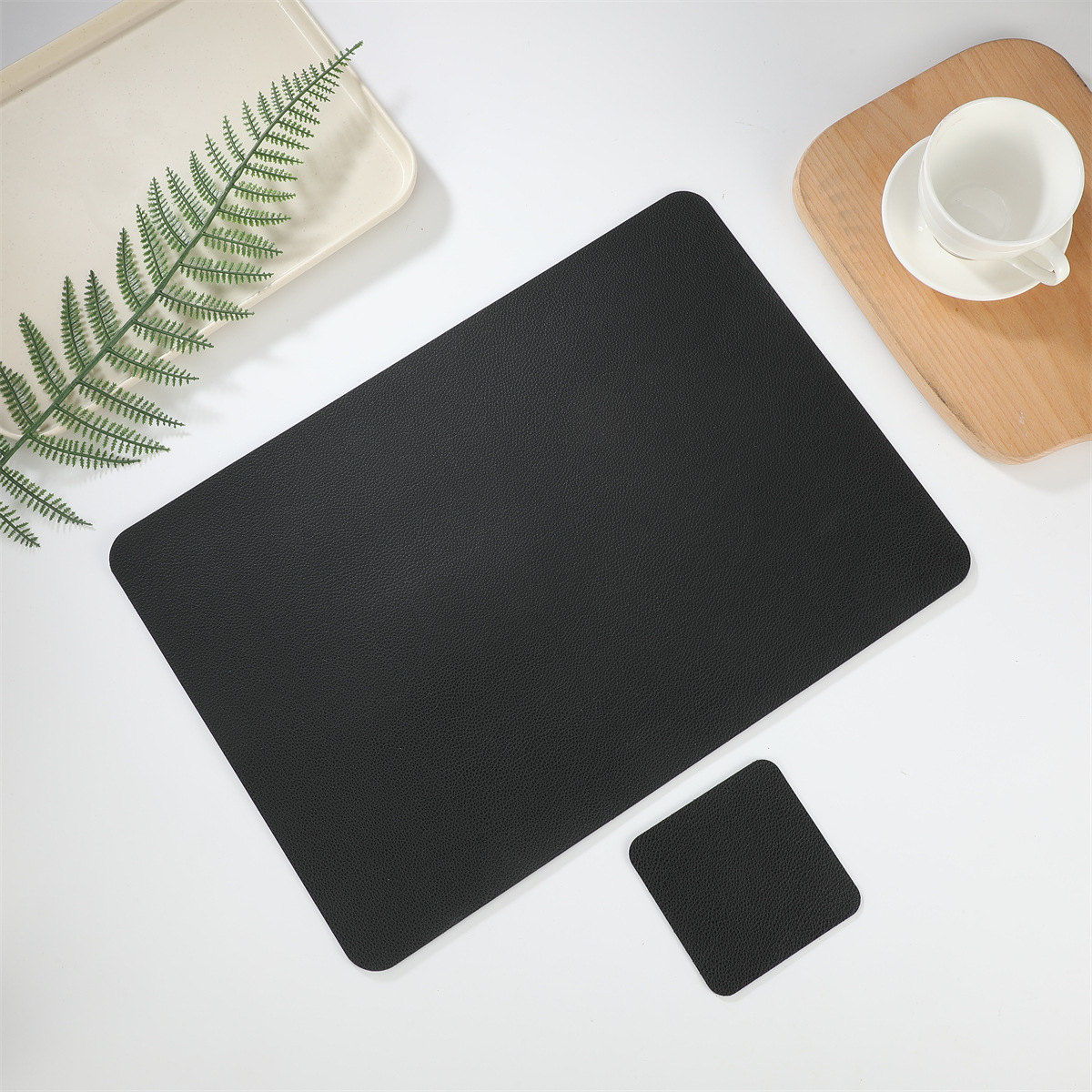 크로스 보더 재고 가죽 2 종 세트 1 장 롱 스퀘어 + 1 장 스퀘어 코스터 웨스턴 테이블 매트 단열 방수 매트