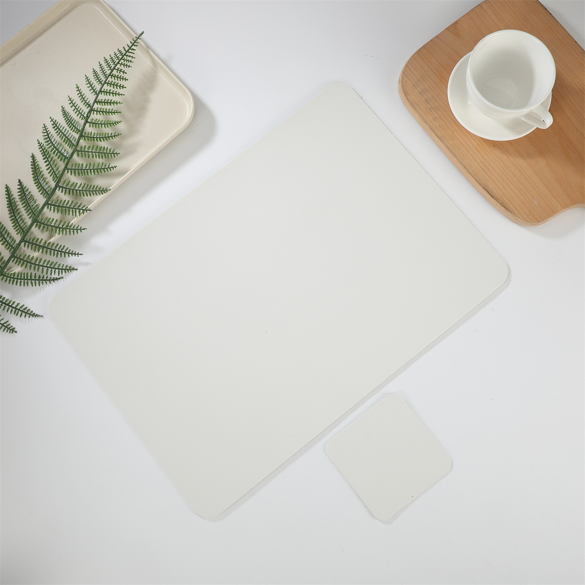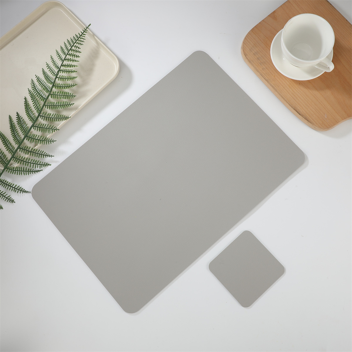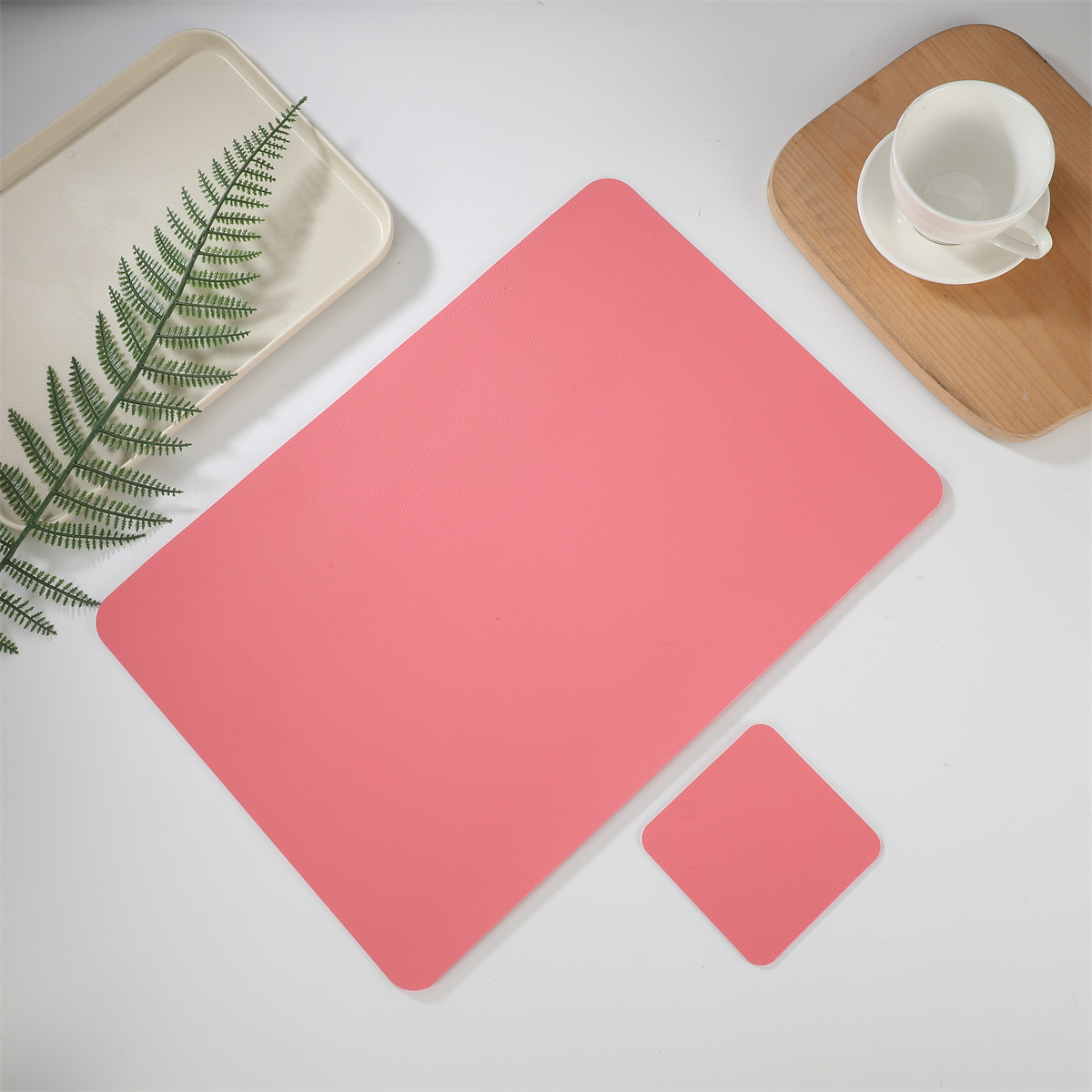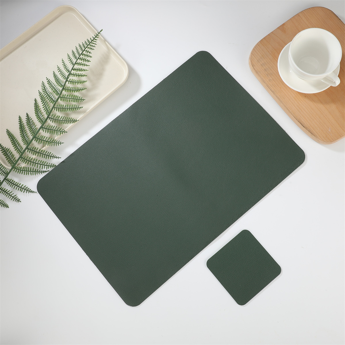 크로스 보더 재고 가죽 2 종 세트 1 장 롱 스퀘어 + 1 장 스퀘어 코스터 웨스턴 테이블 매트 단열 방수 매트
