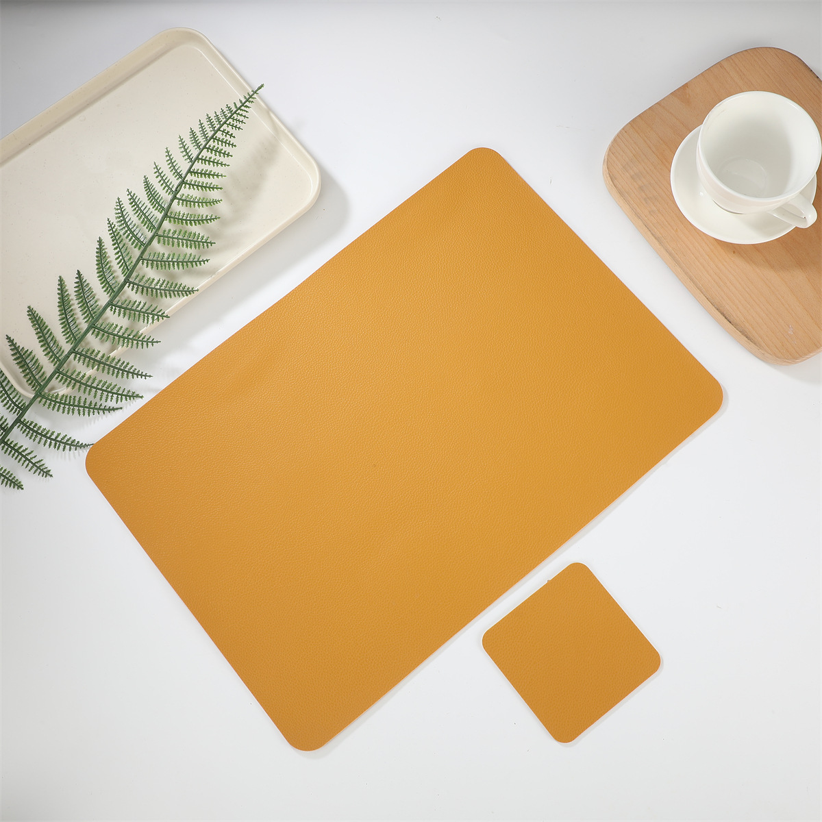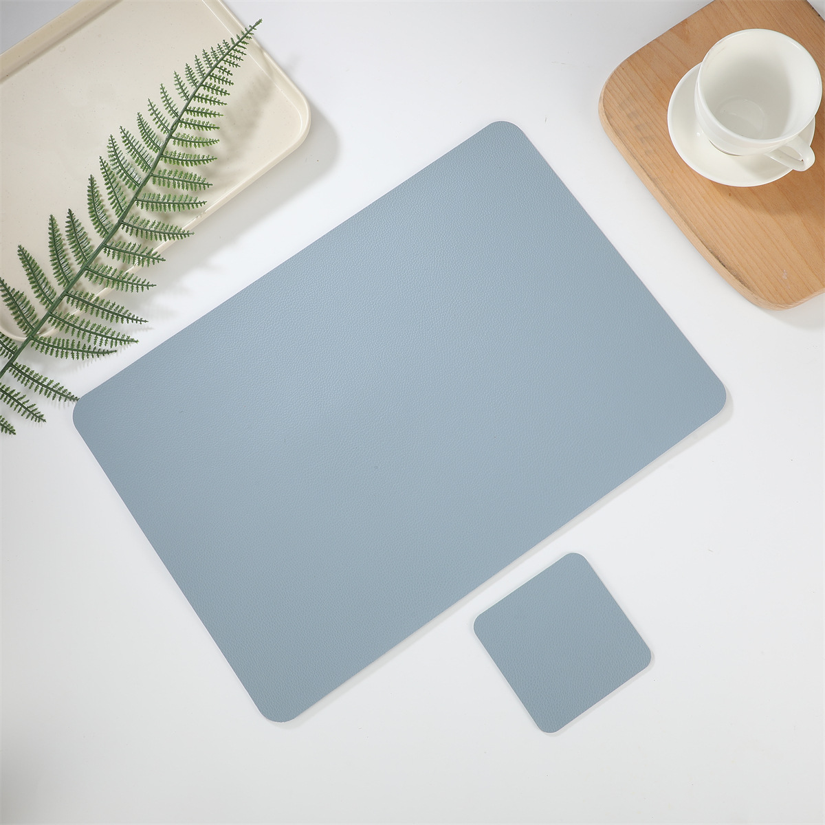 크로스 보더 재고 가죽 2 종 세트 1 장 롱 스퀘어 + 1 장 스퀘어 코스터 웨스턴 테이블 매트 단열 방수 매트스토어 가기