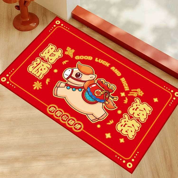 말의 해에 행운을 빌어요! 출입구 매트, 발매트, 담요, 카펫, 빨간색 축제용 현관 매트, 보석, 보험, 은행 선물스토어 가기