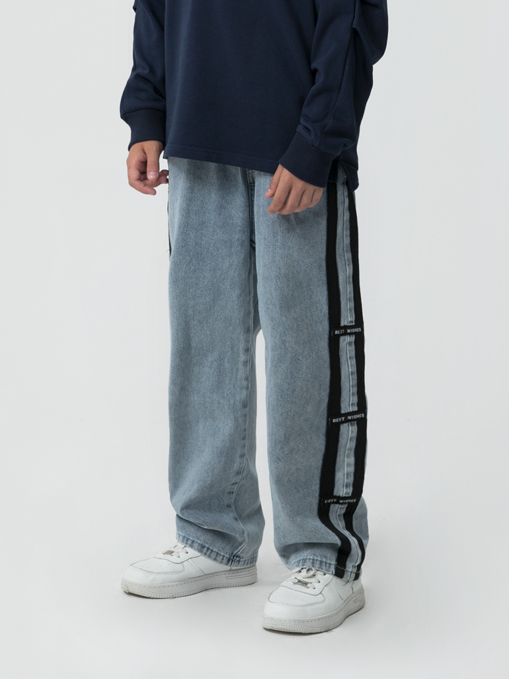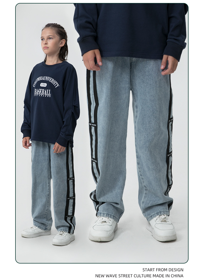 MT 아동복 2025 가을 아동용 청바지 개성 있는 라벨 패션 남아용 스트레이트 팬츠 중대형 아동용 와이드 팬츠