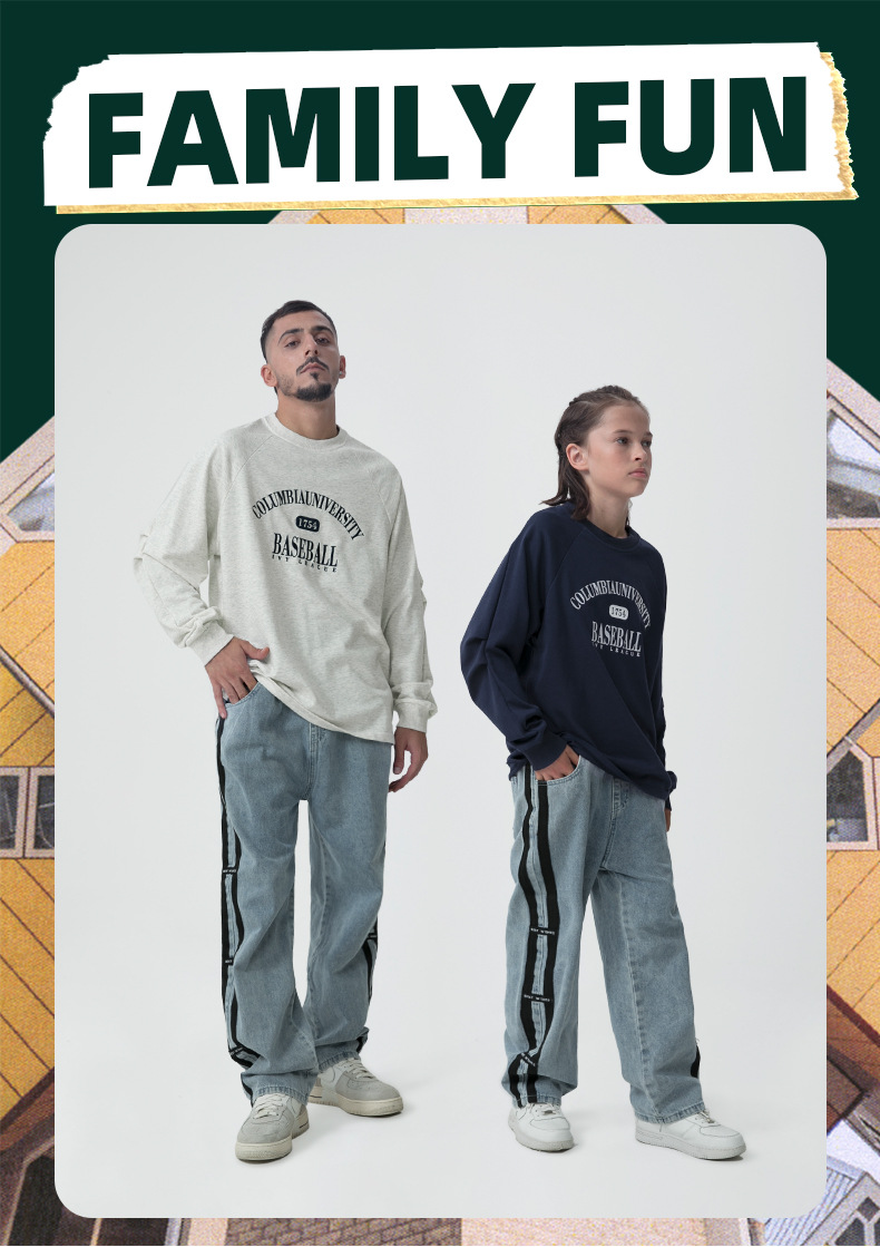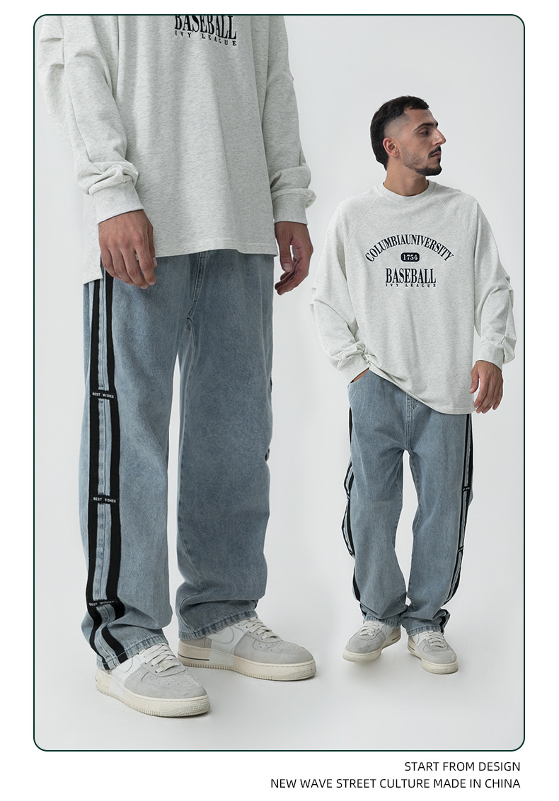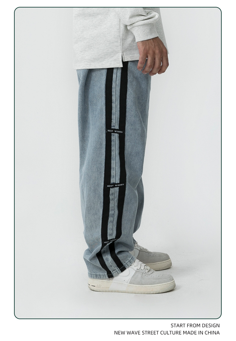 MT 아동복 2025 가을 아동용 청바지 개성 있는 라벨 패션 남아용 스트레이트 팬츠 중대형 아동용 와이드 팬츠스토어 가기