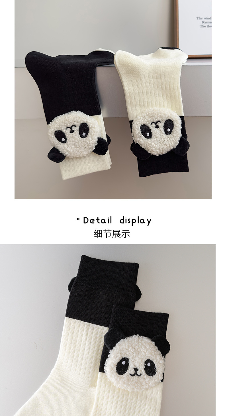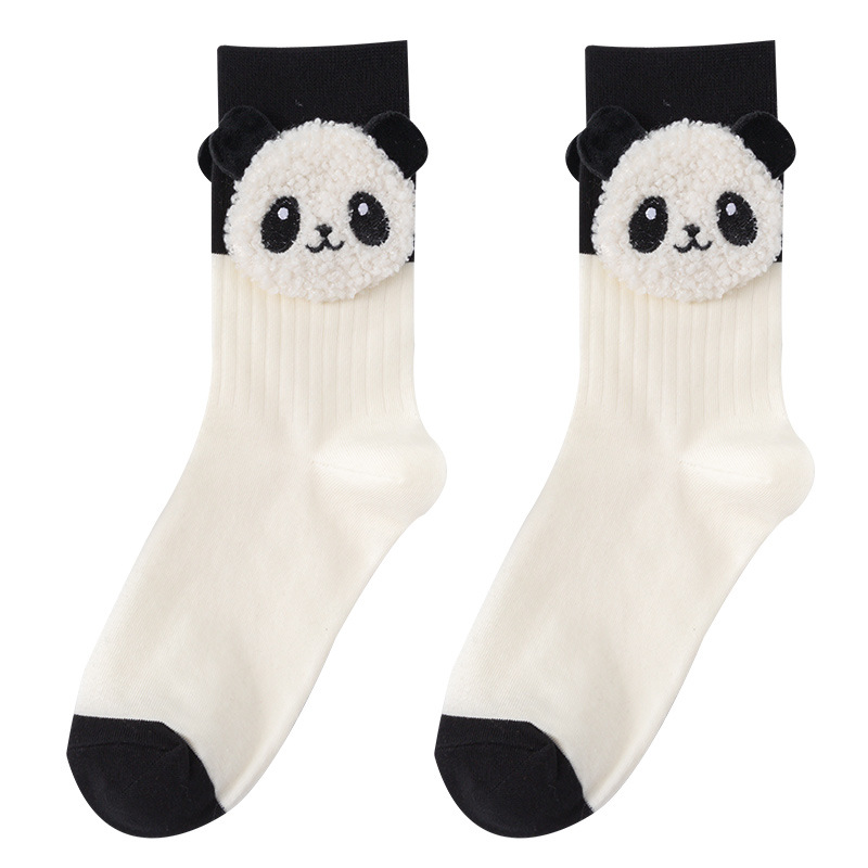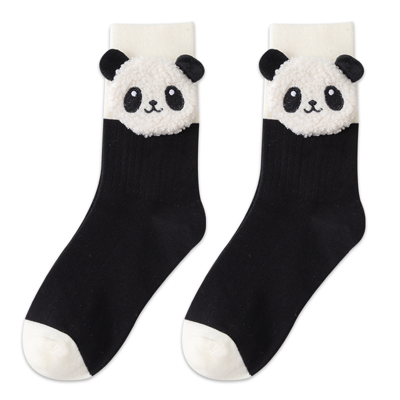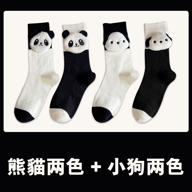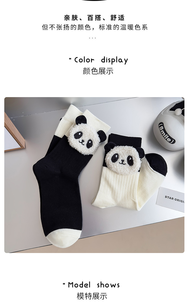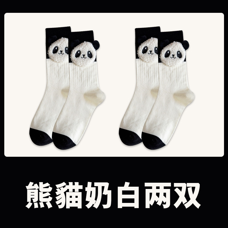 동대문 양말 여성용 중간 길이 양말 가을과 겨울 팬더 인형 입체 인형 사이버 유행 만화 귀여운 스타킹