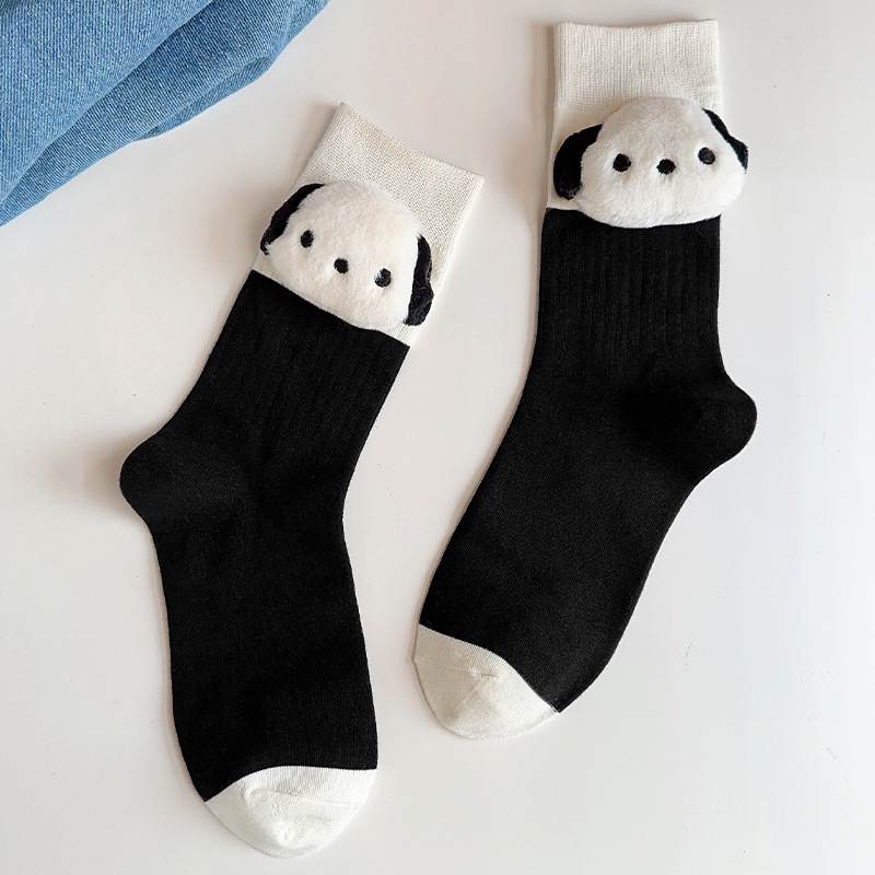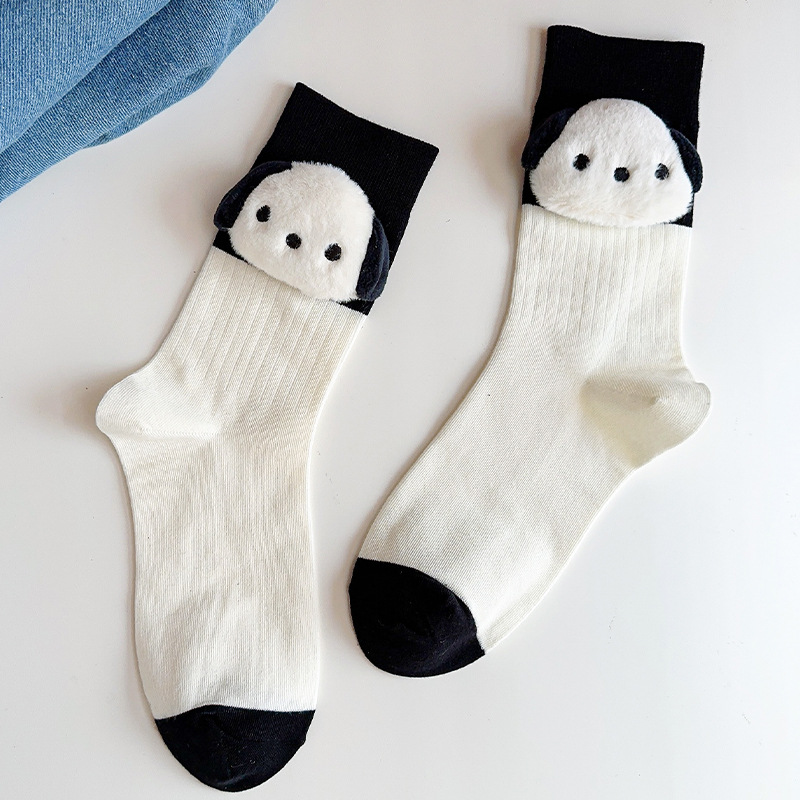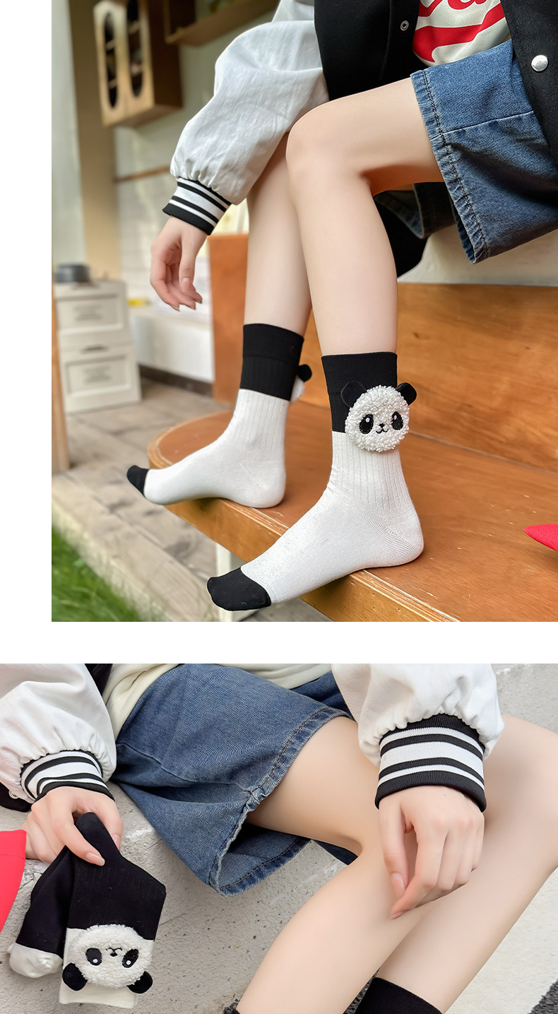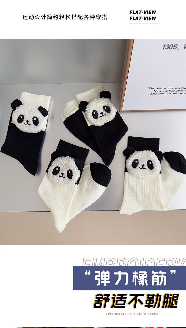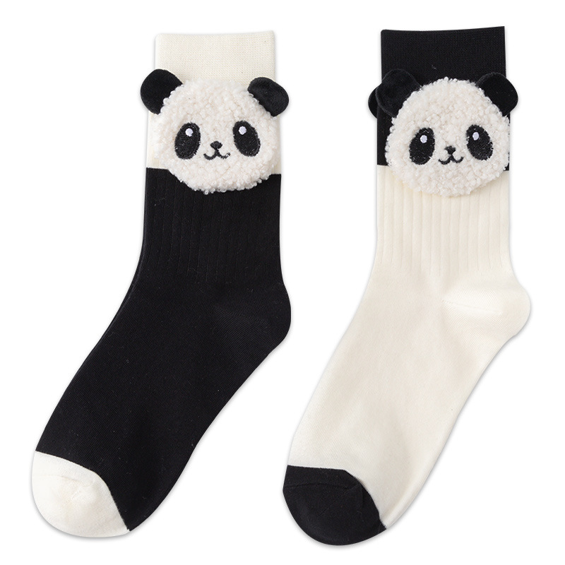 동대문 양말 여성용 중간 길이 양말 가을과 겨울 팬더 인형 입체 인형 사이버 유행 만화 귀여운 스타킹