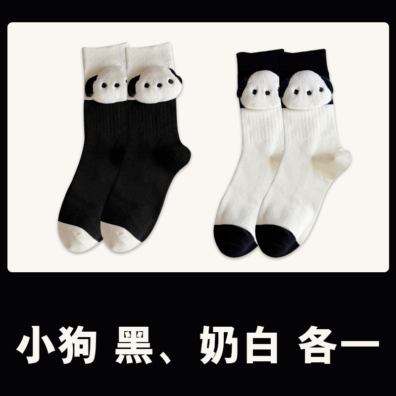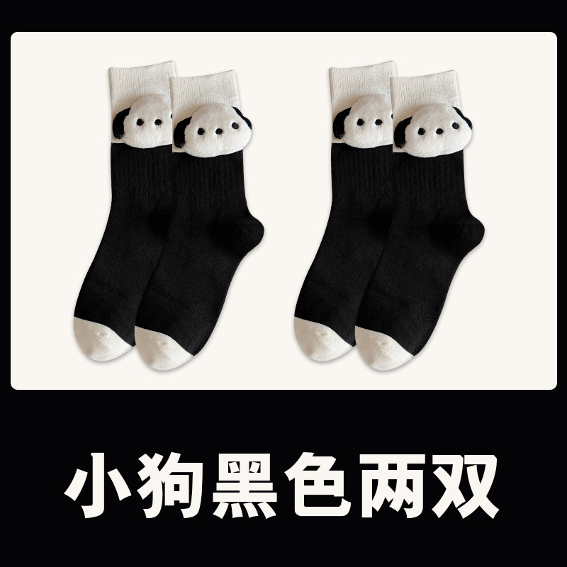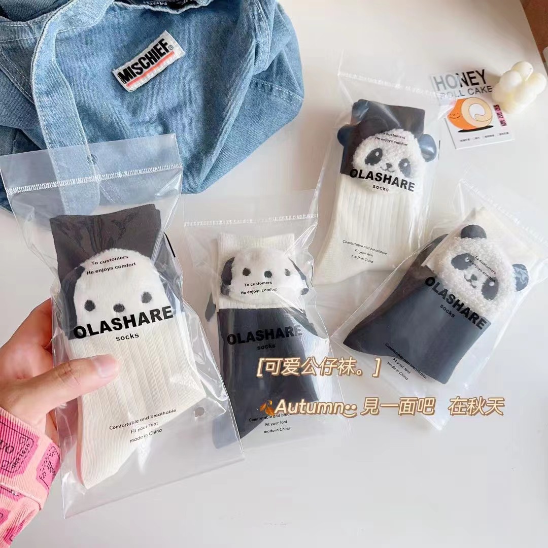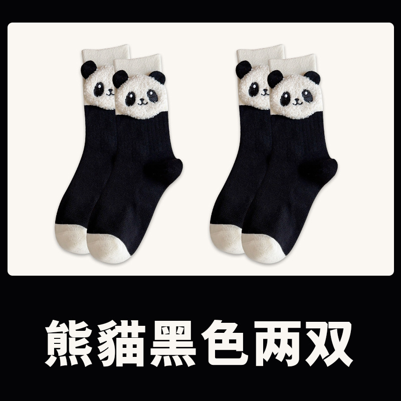 동대문 양말 여성용 중간 길이 양말 가을과 겨울 팬더 인형 입체 인형 사이버 유행 만화 귀여운 스타킹스토어 가기