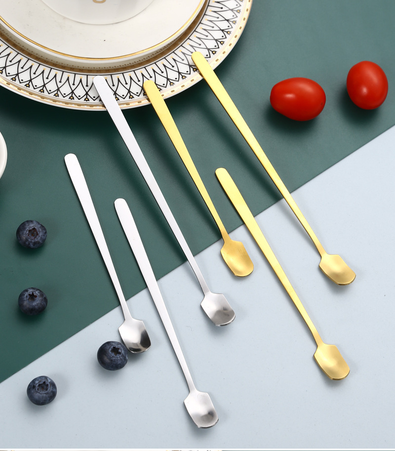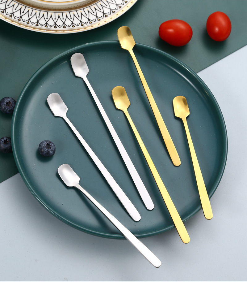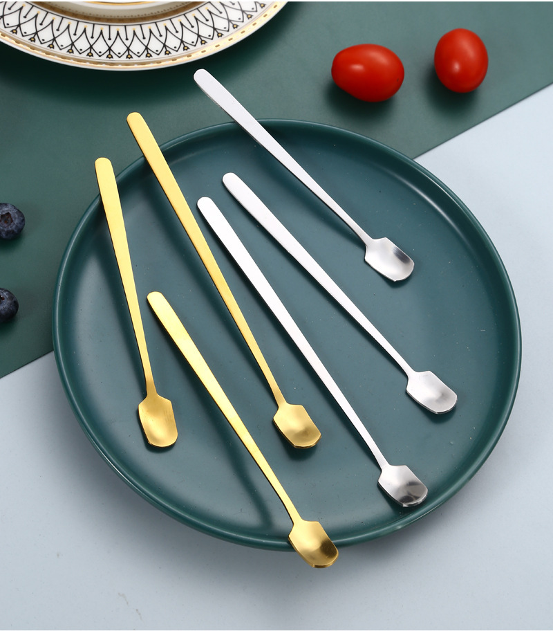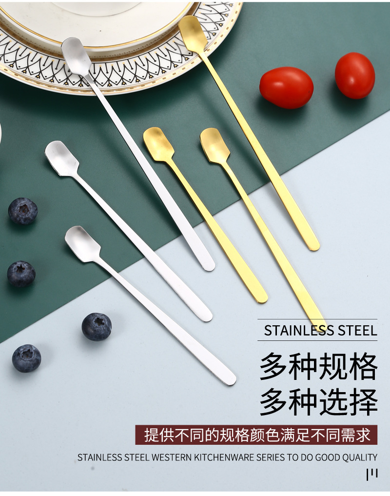 스테인레스 스틸 스퀘어 스푼 티스푼 티스푼 머그잔 일정한 온도 컵 긴 핸들 아이스 스푼 혼합 숟가락 꿀 숟가락 인쇄 로고스토어 가기
