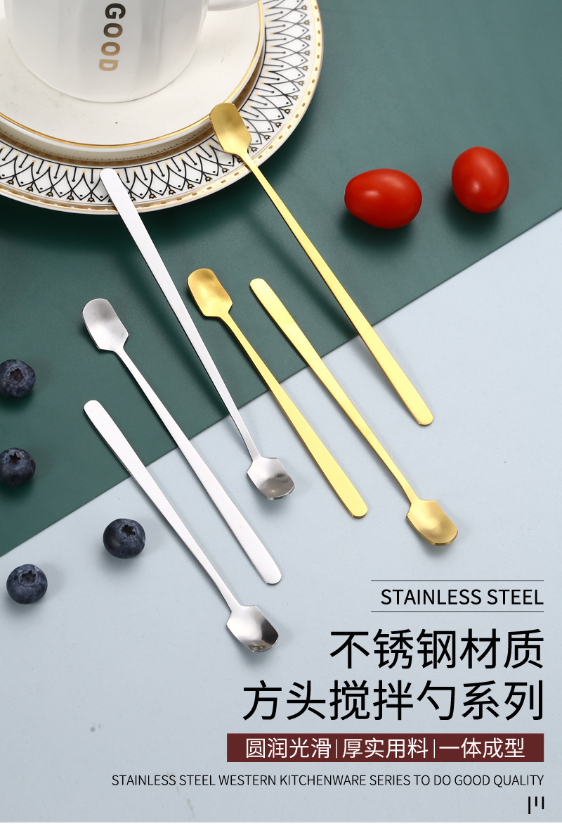 스테인레스 스틸 스퀘어 스푼 티스푼 티스푼 머그잔 일정한 온도 컵 긴 핸들 아이스 스푼 혼합 숟가락 꿀 숟가락 인쇄 로고