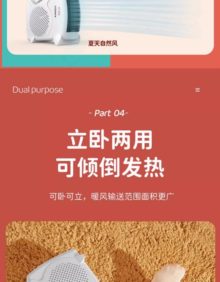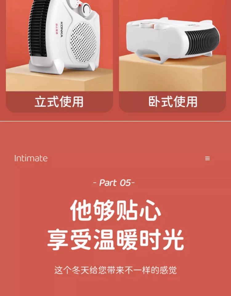 콘카 난방기 가정용 전기 히터 소형 태양열 전기 히터 빠른 가열 난로 스마트 온도 조절
