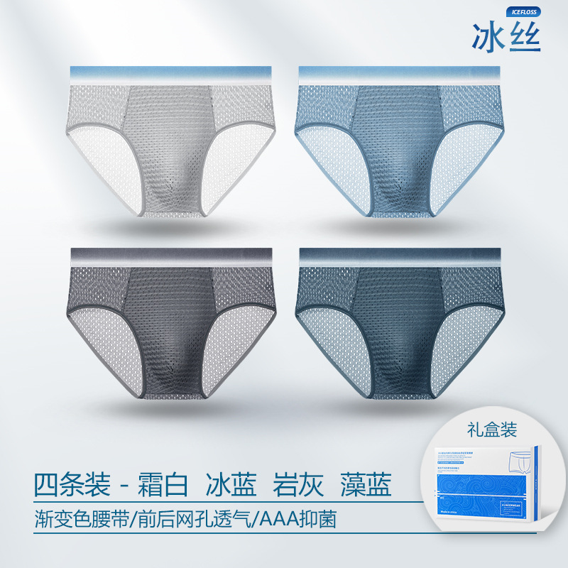 아이스 실크 삼각팬티 여름 항균 메쉬 통기성 중간 허리 대형 사이즈 남성용 속건성 팬티 삼각팬티 남성용 아이스감스토어 가기