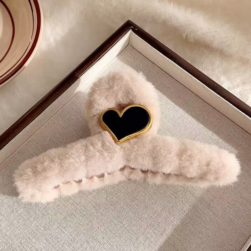 • 머리핀 화이트-블랙 하트 (11.5cm)