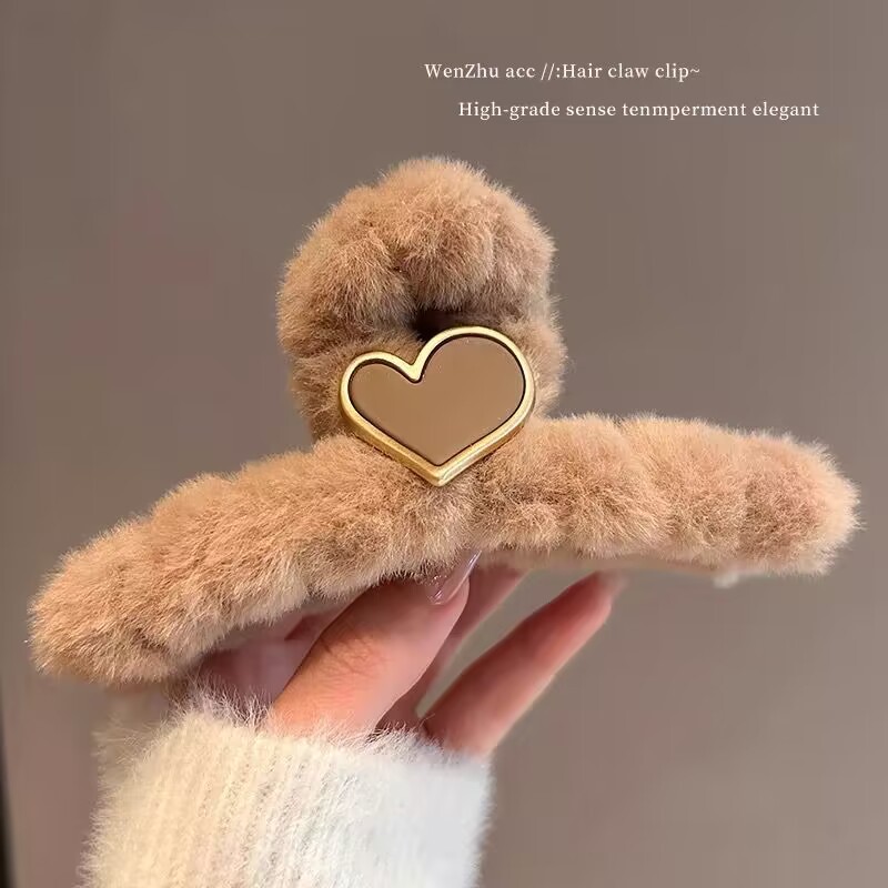 가을과 겨울 봉제 클립 큰 귀여운 인형 헤어핀 곰 머리 상어 클립 헤어 클립 대형 클립 헤드웨어스토어 가기