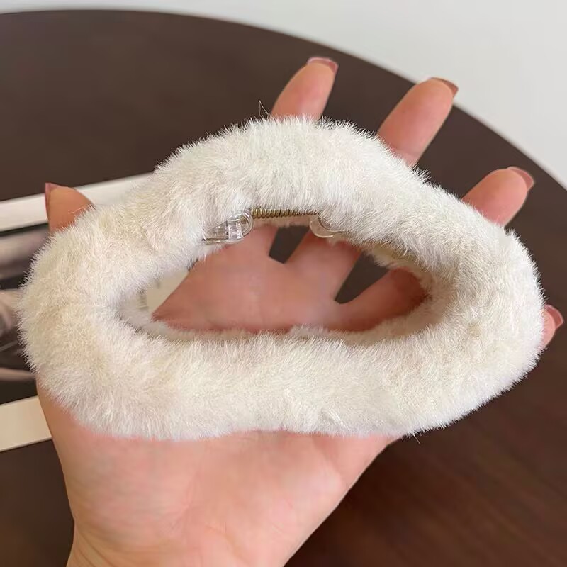 • 흰색 토끼털 머리핀#(13cm) 단면