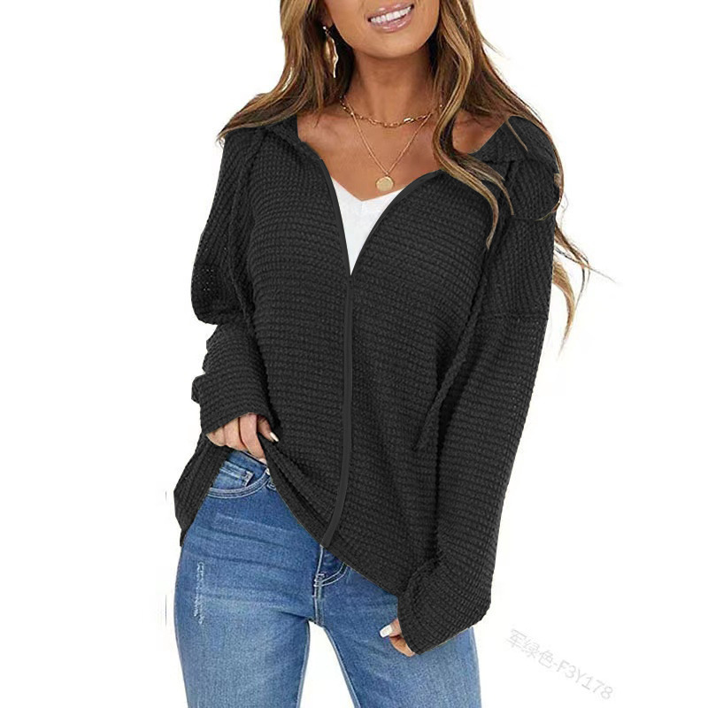 2023 크로스 보더 새로운 여성의 가을과 겨울 패션 단색 드로우 스트링 후드 단색 재킷 패션 캐주얼 카디건 지퍼