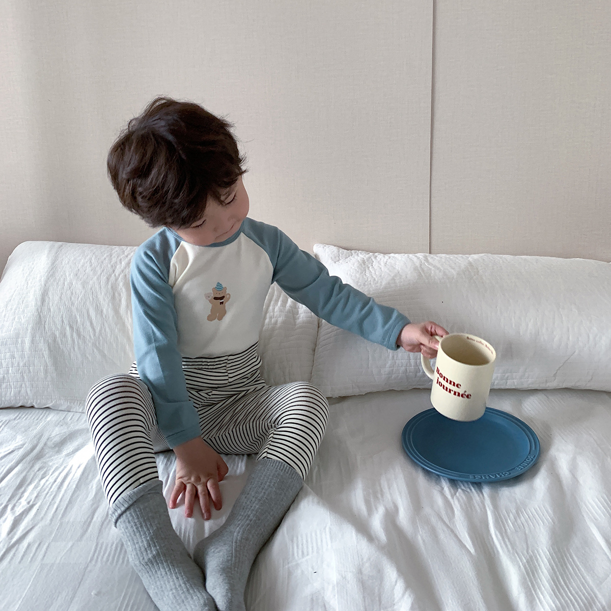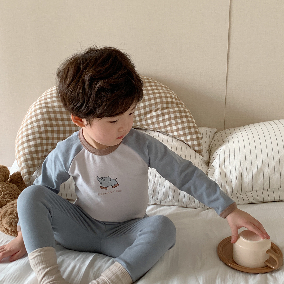 가을 한국 스타일 아동 홈웨어 세트 남아 여아 만화 프린트 물방울무늬 래글런 소매 잠옷 유아 속옷