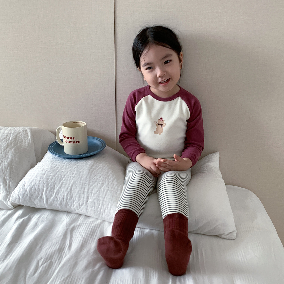 • 스트라이프 라글란 슬리브 베어 다크 퍼플