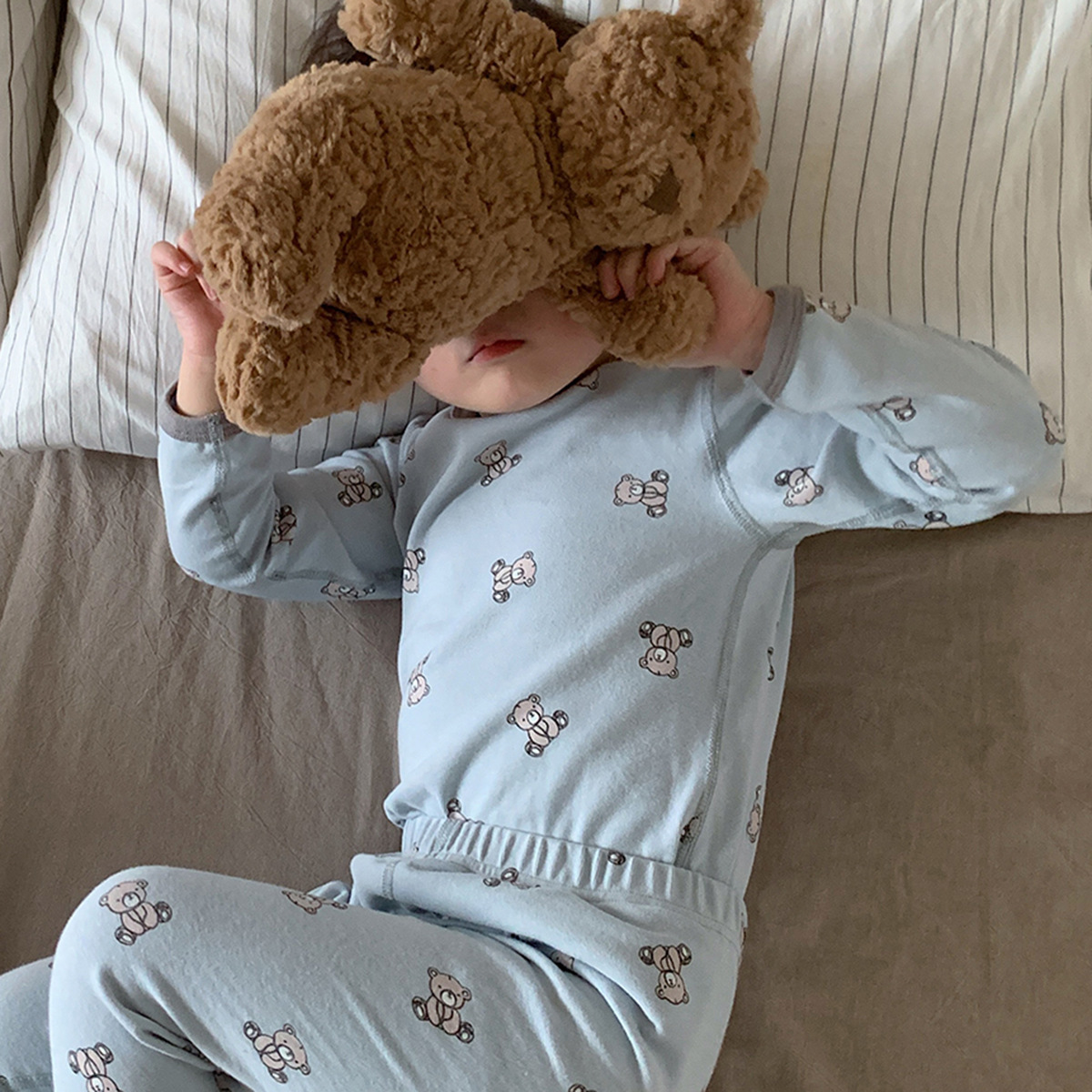 가을 한국 스타일 아동 홈웨어 세트 남아 여아 만화 프린트 물방울무늬 래글런 소매 잠옷 유아 속옷스토어 가기