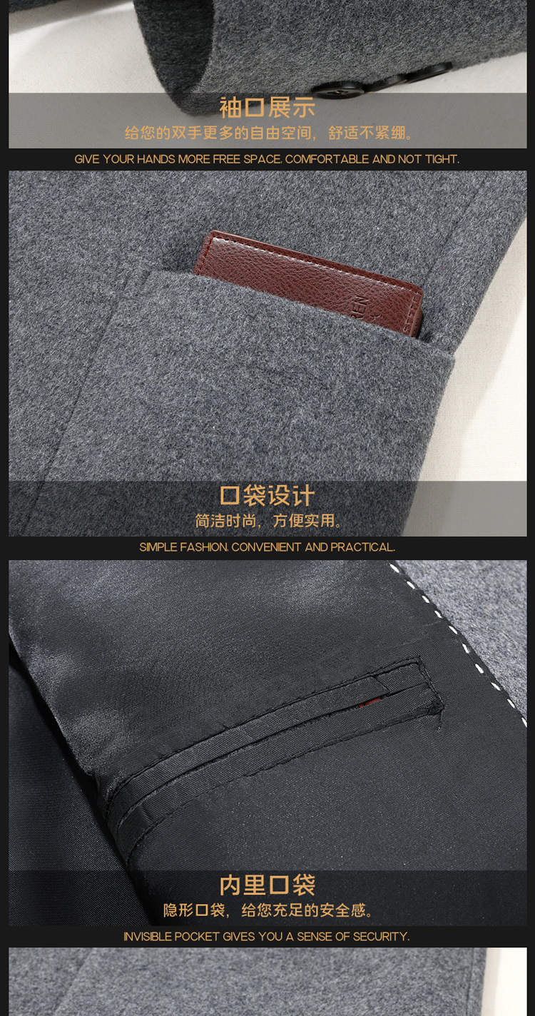 남성용 양면 캐시미어 재킷 가을 겨울 단색 짧은 울 재킷 남성 정장 다용도