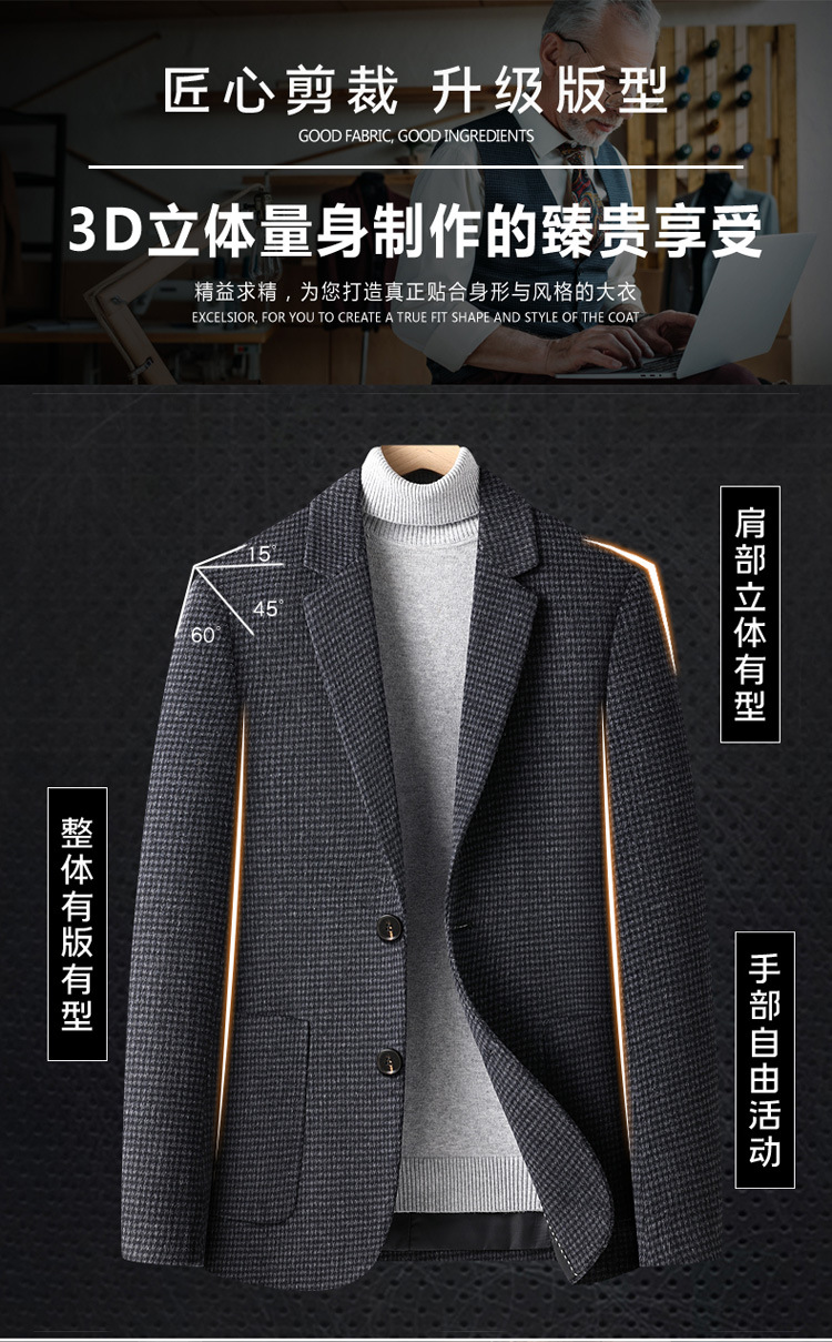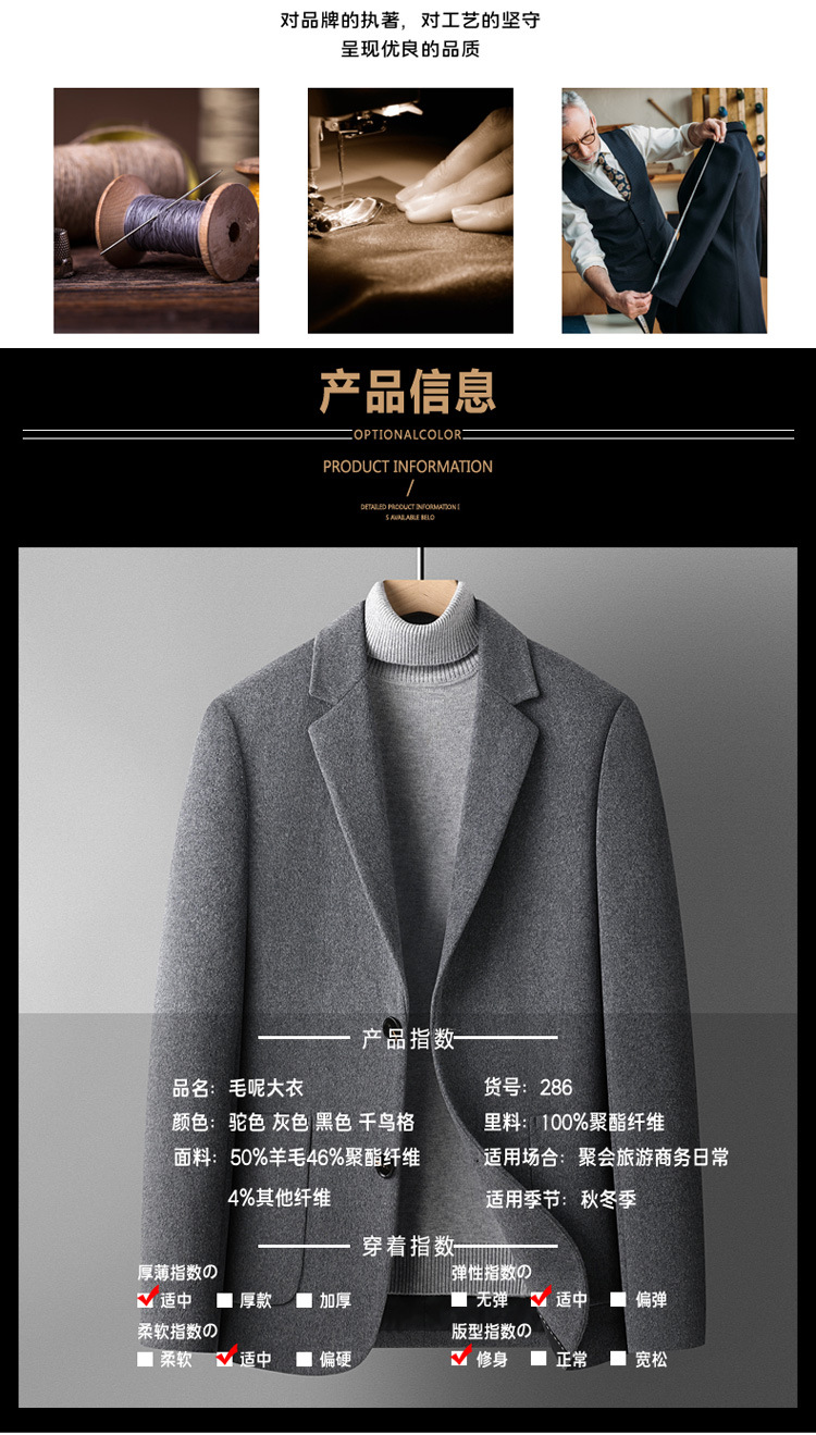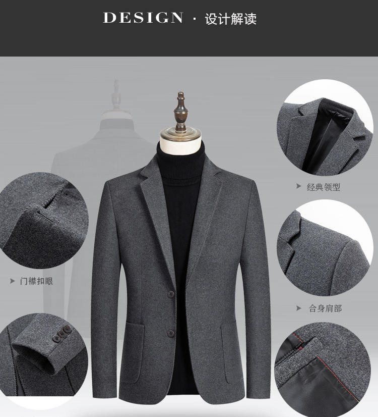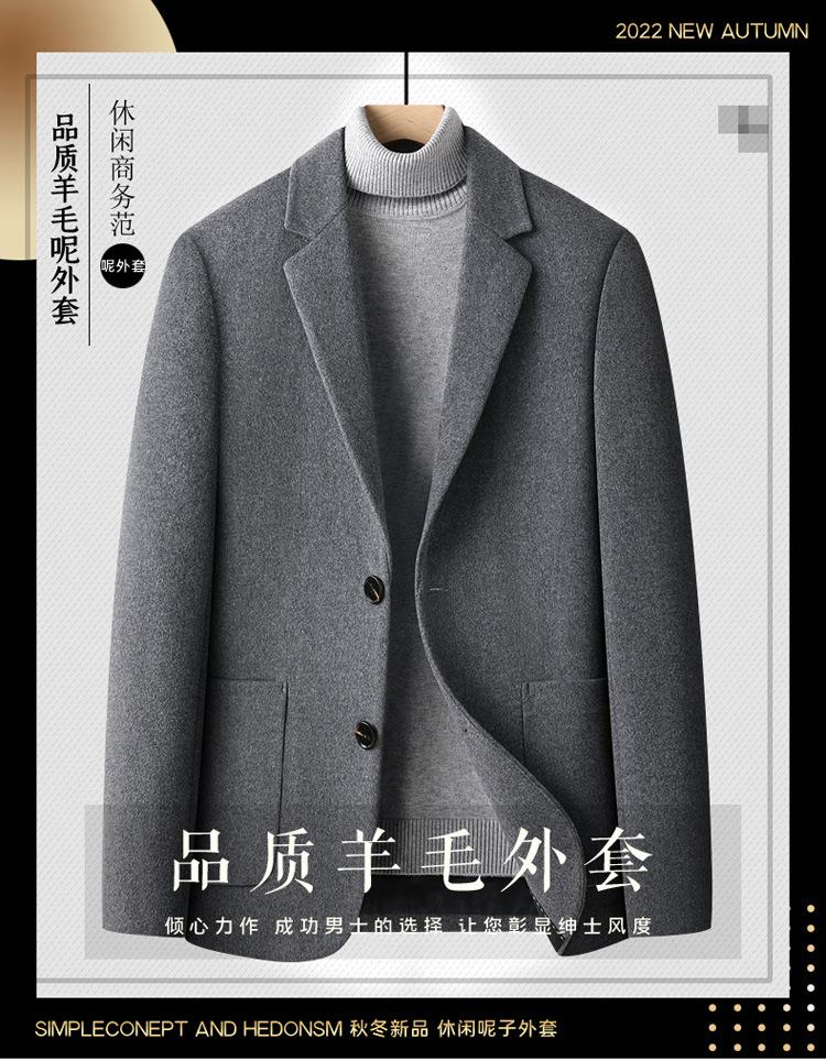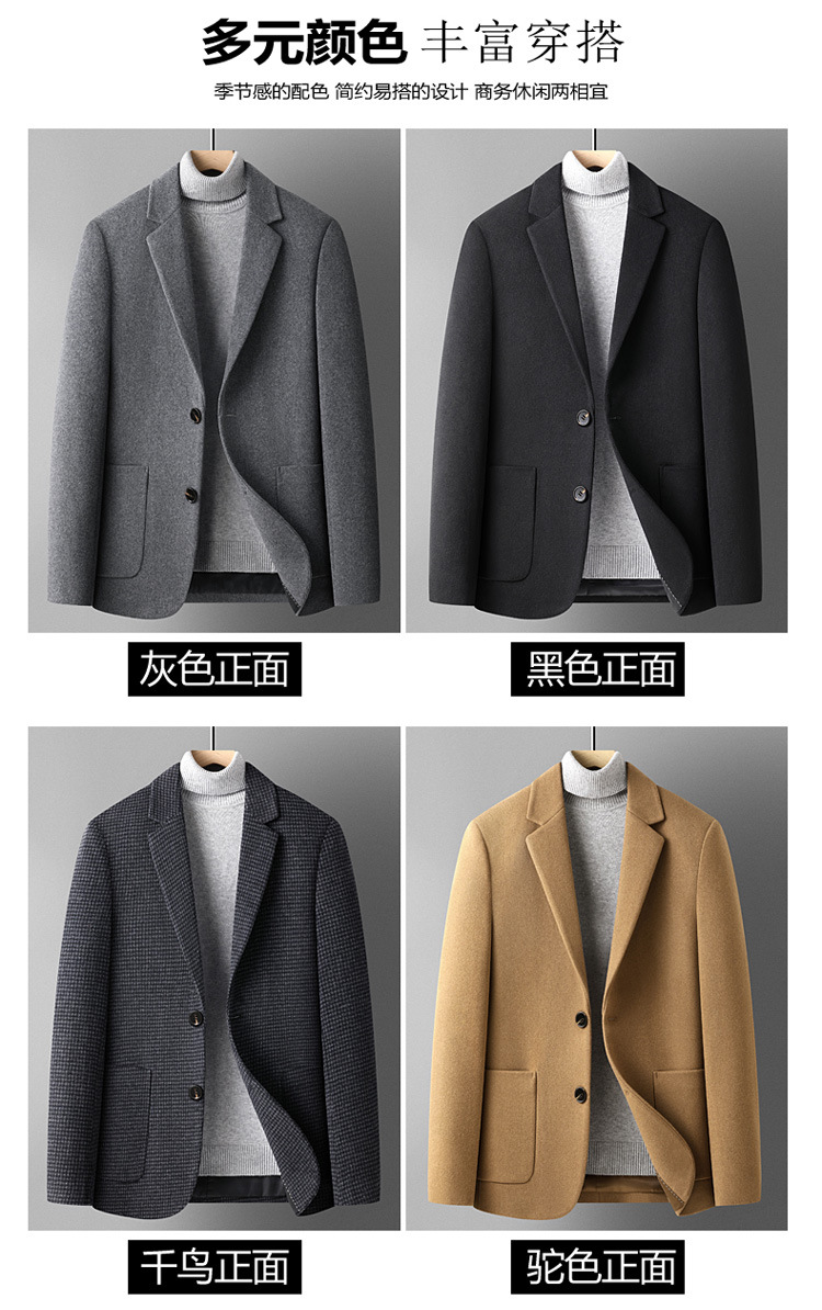 남성용 양면 캐시미어 재킷 가을 겨울 단색 짧은 울 재킷 남성 정장 다용도스토어 가기