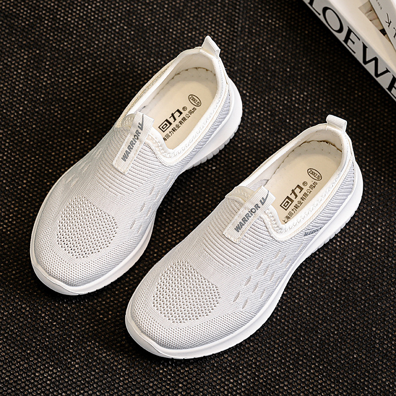 Huili 엄마 신발 흰색 신발 가을 통기성 새로운 메쉬 부드러운 밑창 메쉬 신발 캐주얼 신발 슬립온 플라이 짠 신발스토어 가기