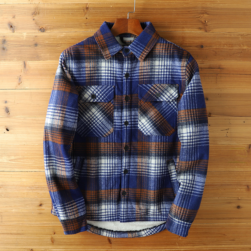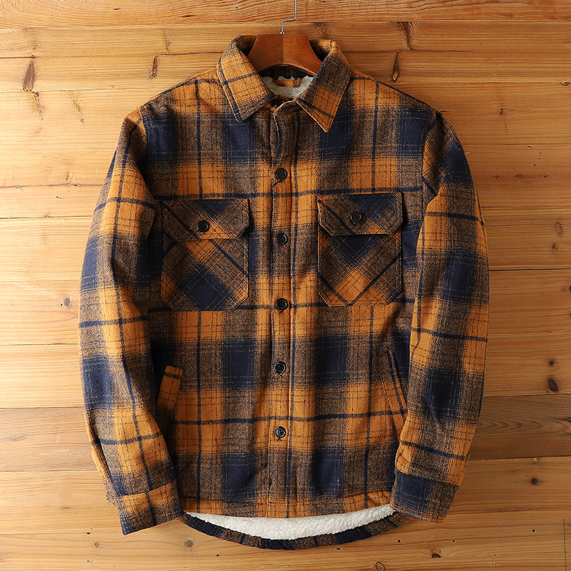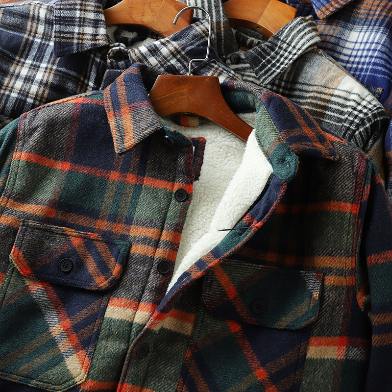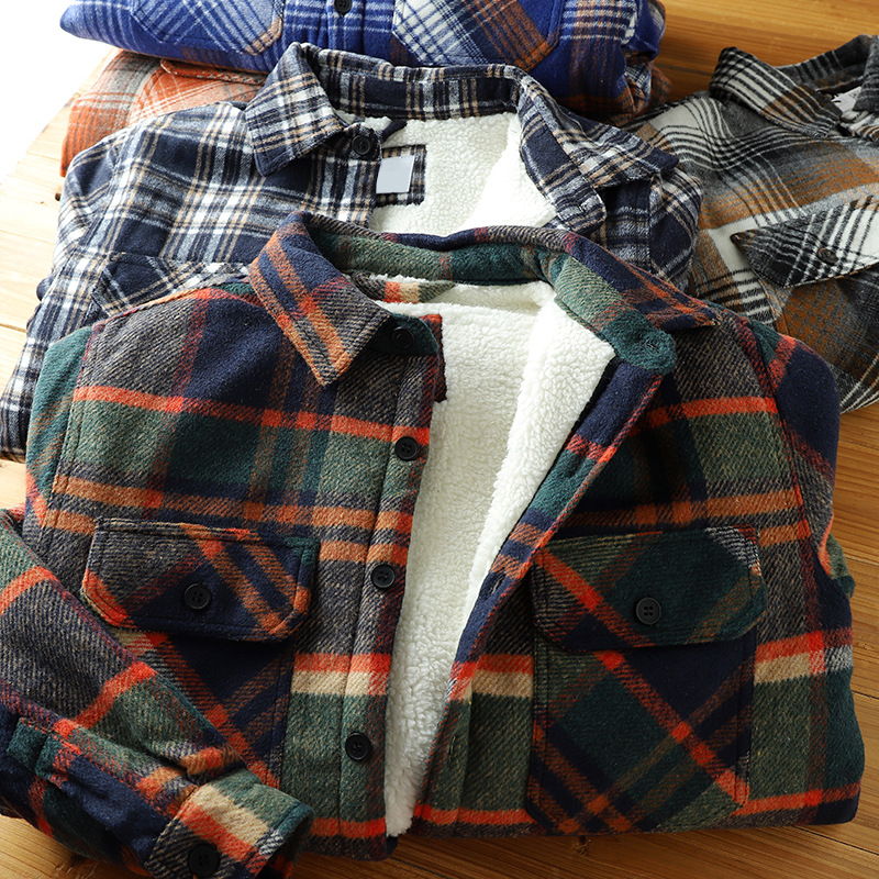 2024 새로운 겨울 남성 벨벳 두꺼운 양고기 벨벳 옷깃 캐주얼 따뜻한 겉옷 격자 무늬 셔츠 자켓스토어 가기
