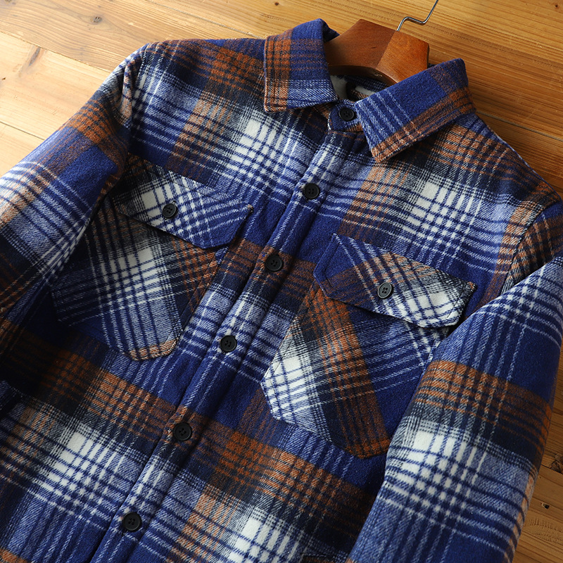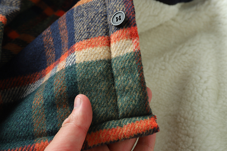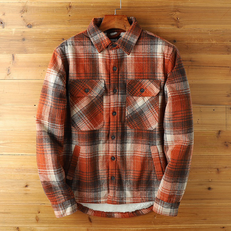 2024 새로운 겨울 남성 벨벳 두꺼운 양고기 벨벳 옷깃 캐주얼 따뜻한 겉옷 격자 무늬 셔츠 자켓