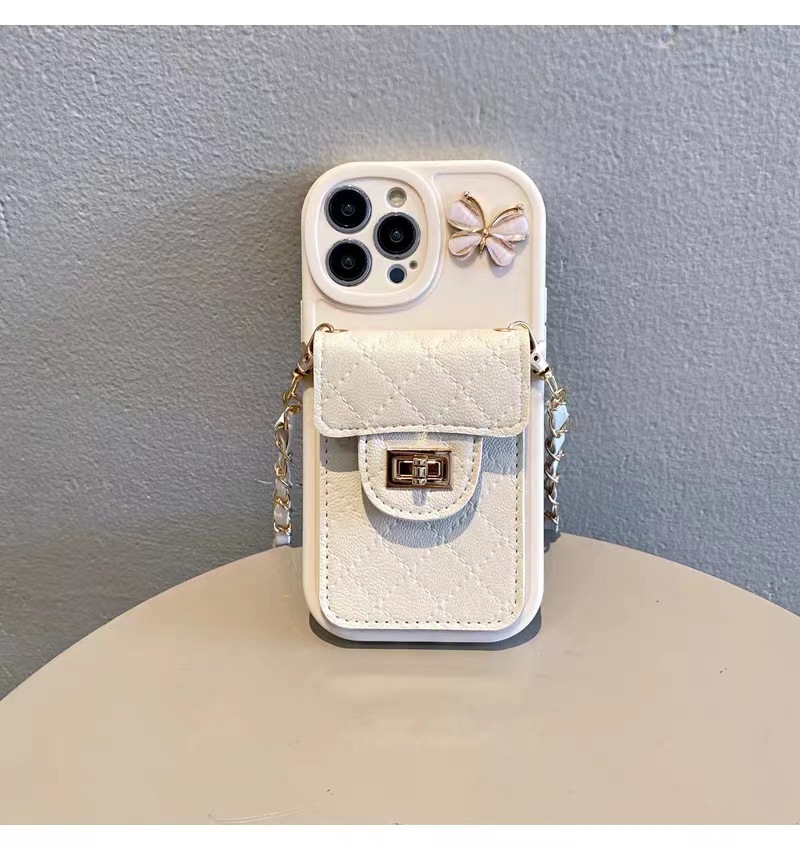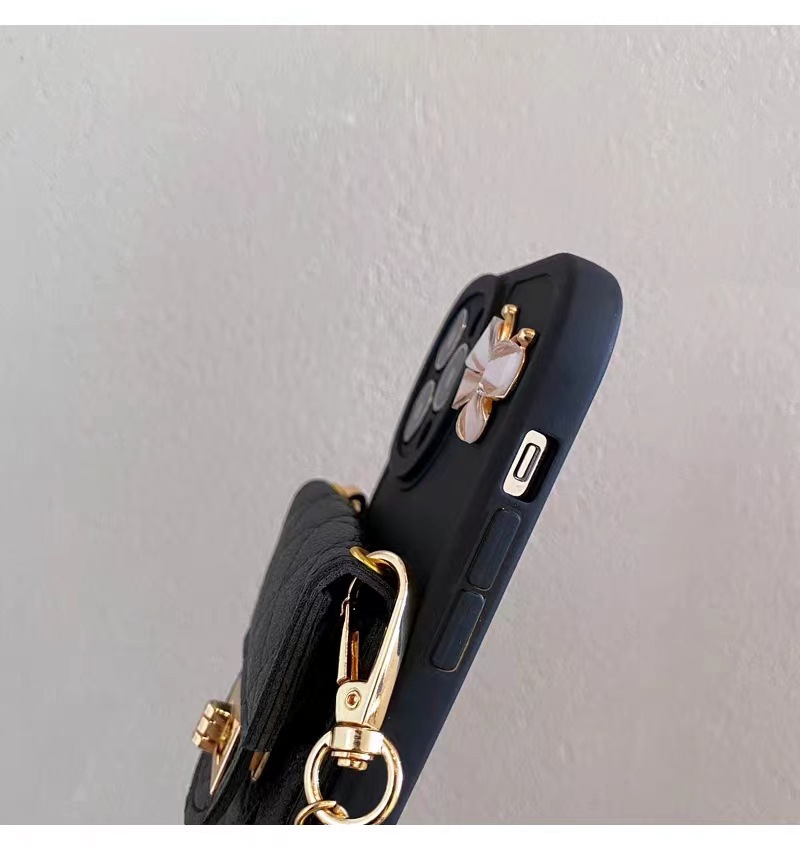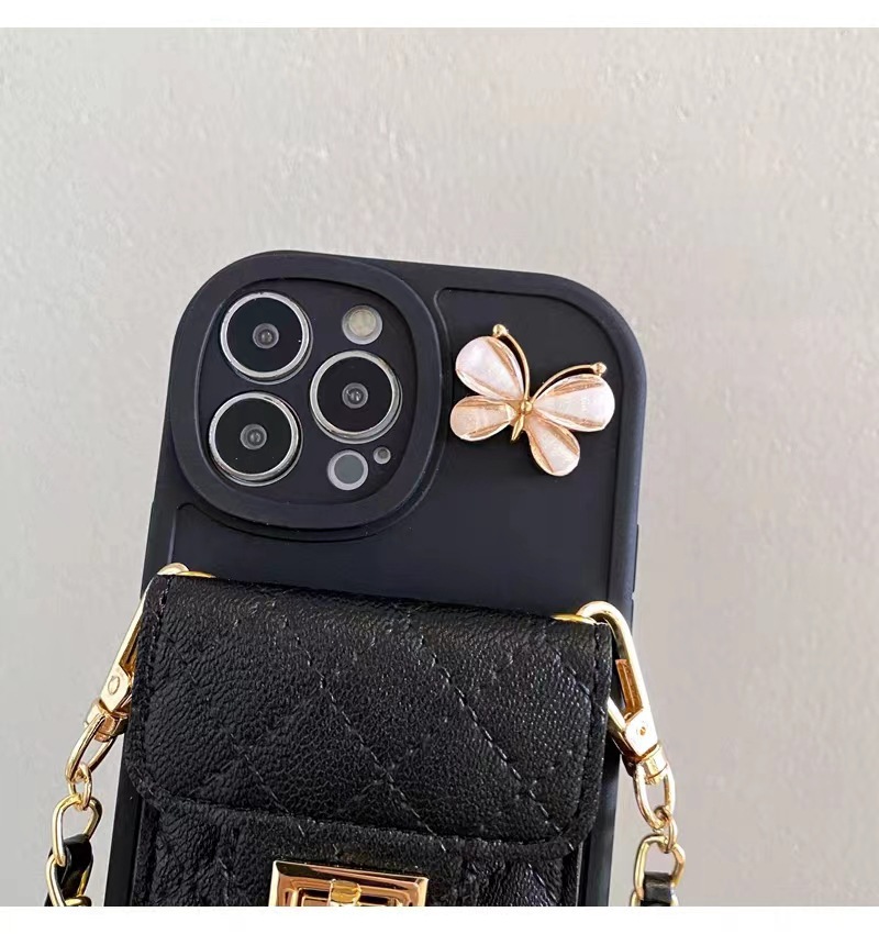 애플 16프로맥스용 샤넬 스타일 동전 지갑 휴대폰 보호 케이스 17 크로스백 15 나비 체인 14 풀커버