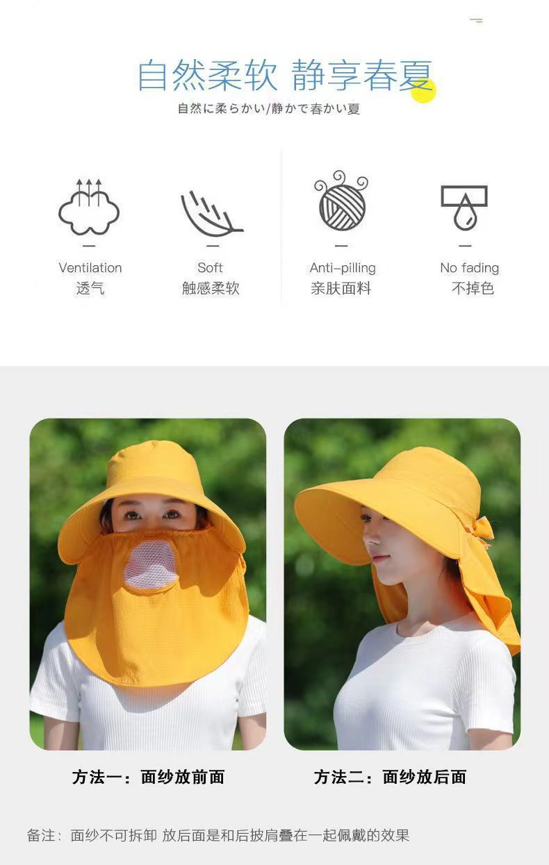 여름 태양 보호 차 따기 모자 여성용 단색 목 보호 숄 모자 야외 얼굴 커버 마스크 모자 롤링 휴대용 태양 모자스토어 가기