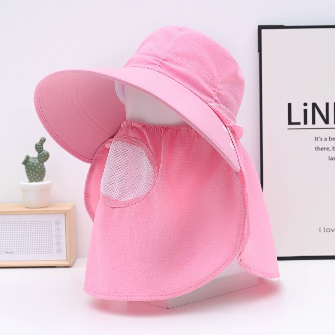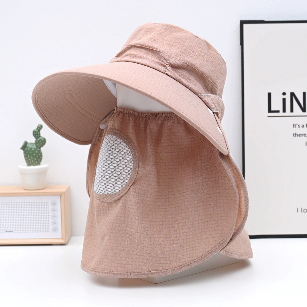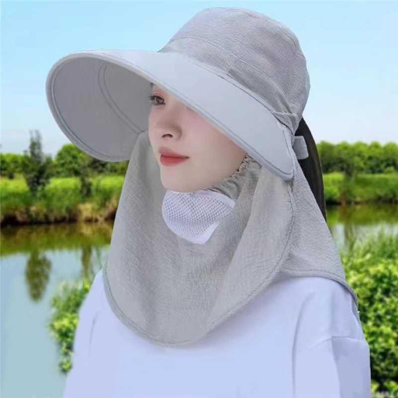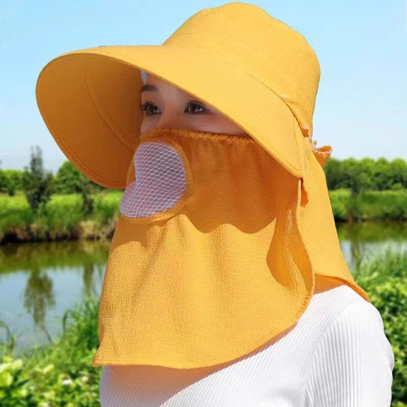 여름 태양 보호 차 따기 모자 여성용 단색 목 보호 숄 모자 야외 얼굴 커버 마스크 모자 롤링 휴대용 태양 모자