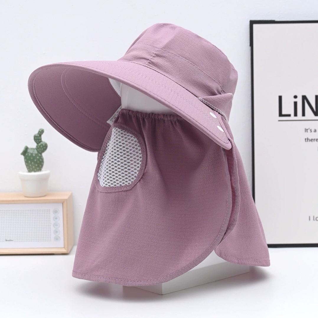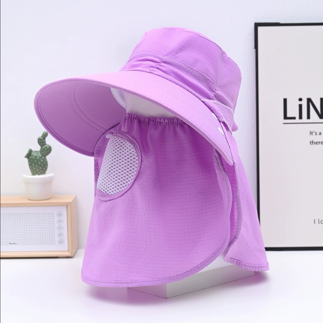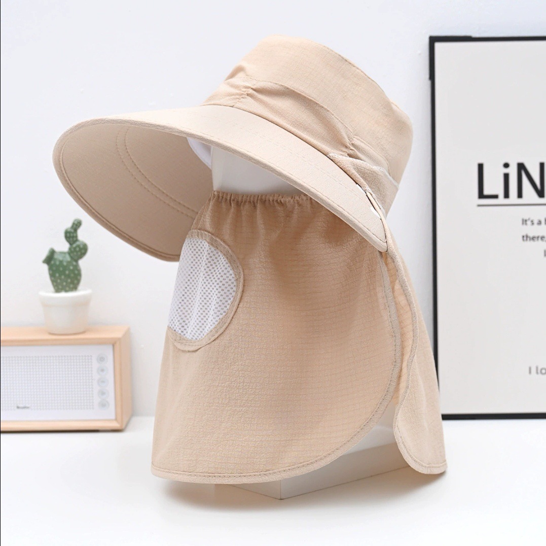 여름 태양 보호 차 따기 모자 여성용 단색 목 보호 숄 모자 야외 얼굴 커버 마스크 모자 롤링 휴대용 태양 모자