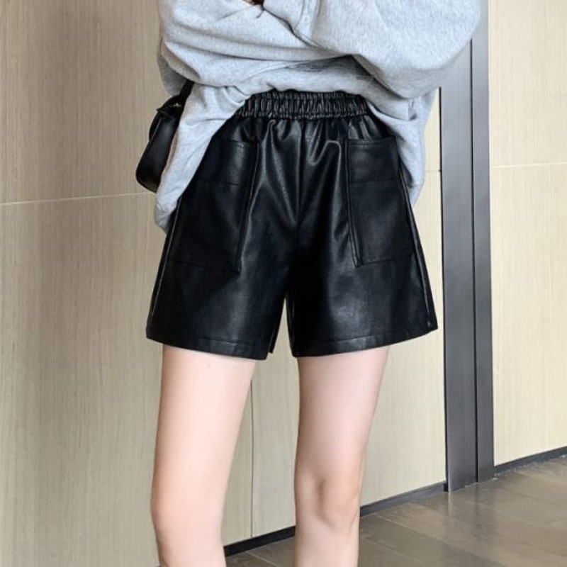 여성용 드로스트링 가죽 반바지 2024 가을 겨울 신작 버드 하이 웨이스트 PU 가죽 바지 한국 스타일 루즈 와이드 레그 캐주얼 바지스토어 가기