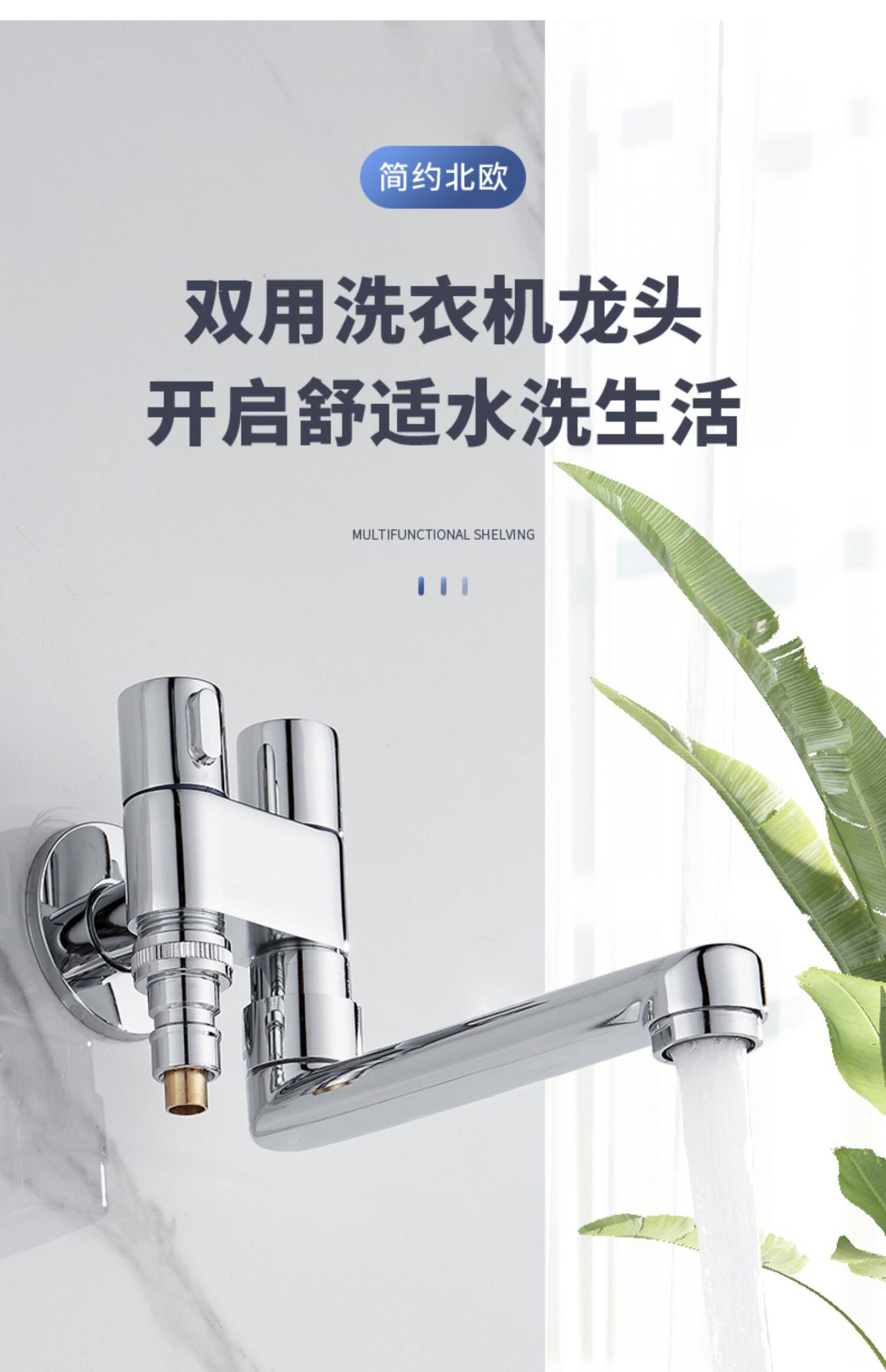 1PKN 세탁기 수도꼭지 1-2 풀 구리 밸브 오프 파이프 자동 워터 스톱 양방향 발코니 걸레 수영장 수도꼭지