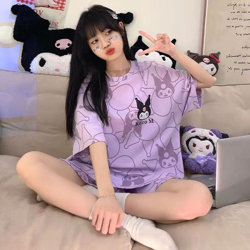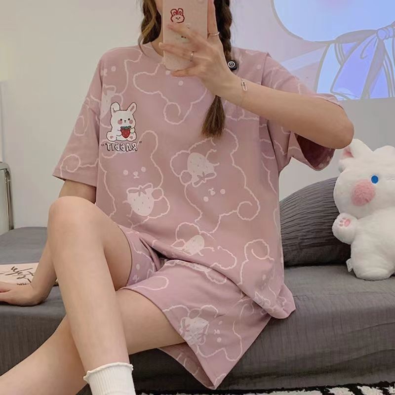 5XL 잠옷 여자 여름 2023 새로운 반팔 여자 중학교 학생 만화 캐주얼 가정복 여름