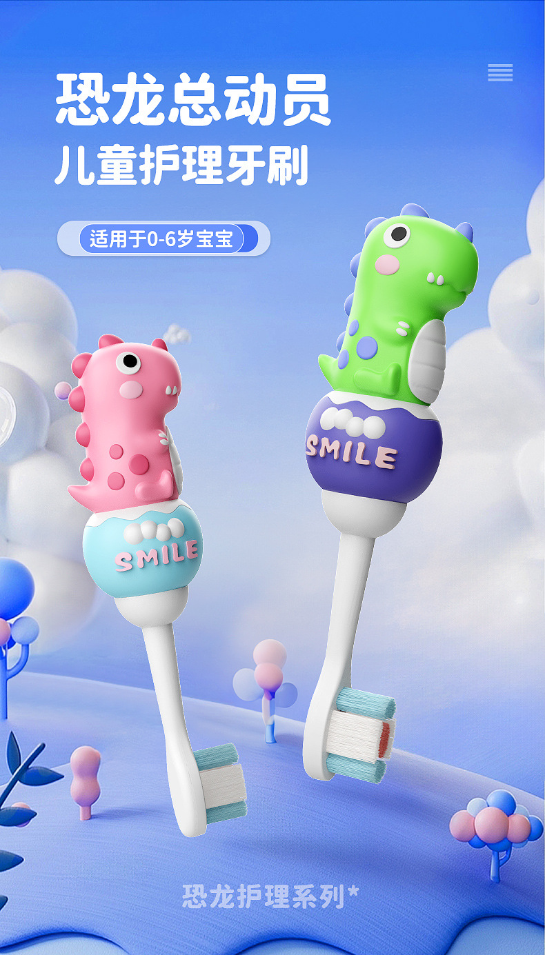 만화 공룡 어린이 칫솔 0-6-12 세 아기 아기 노인 부드러운 칫솔 독립 도매 습관스토어 가기