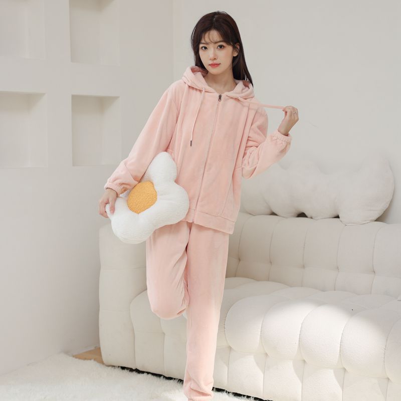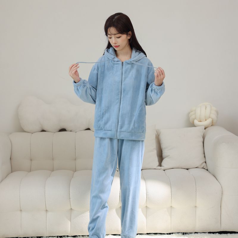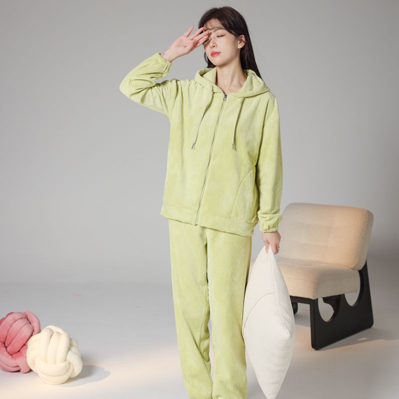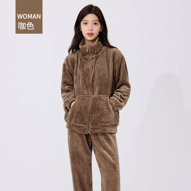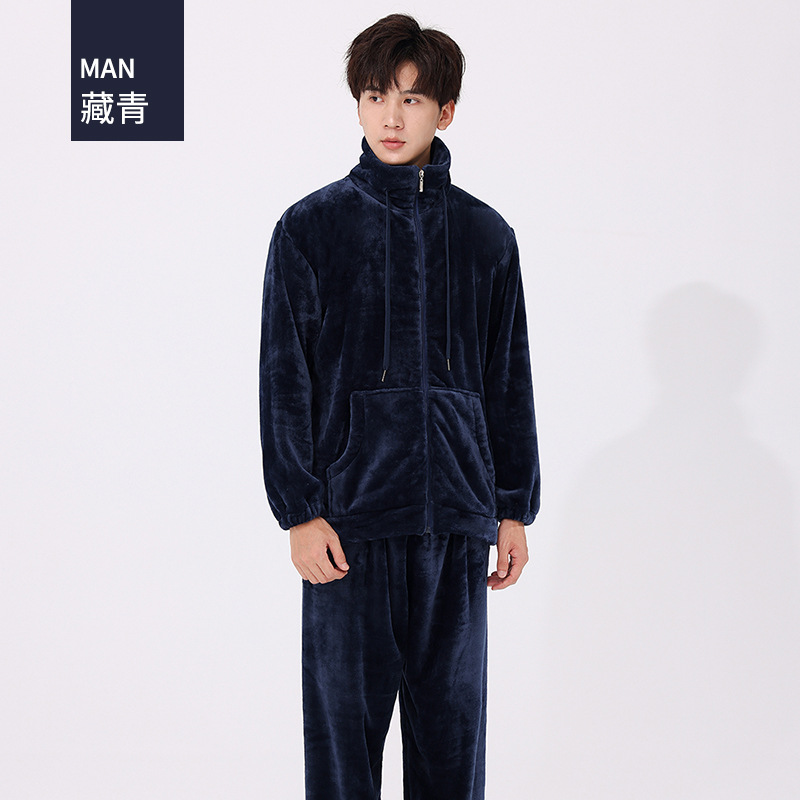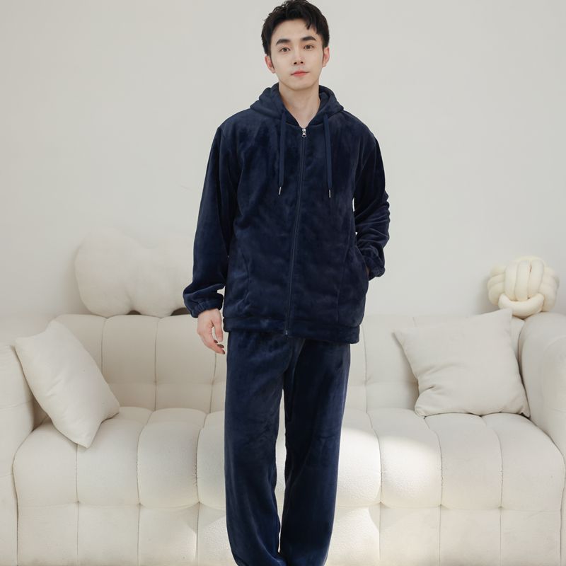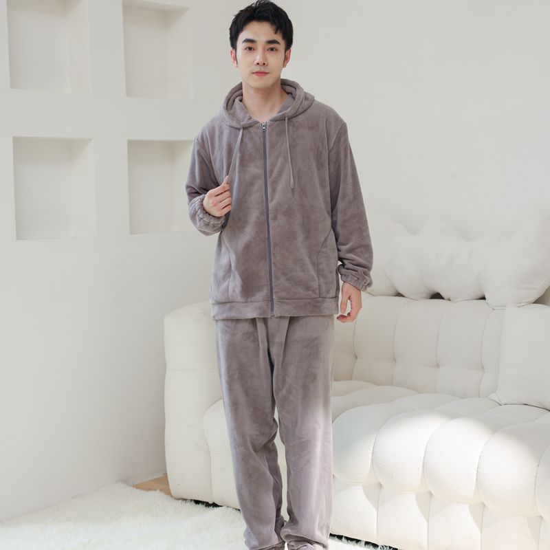 플란넬 가을, 겨울 커플 잠옷 남성용 산호 벨벳 두꺼운 대형 후드 잠옷은 집 밖에서 입을 수 있습니다 옷 세트스토어 가기