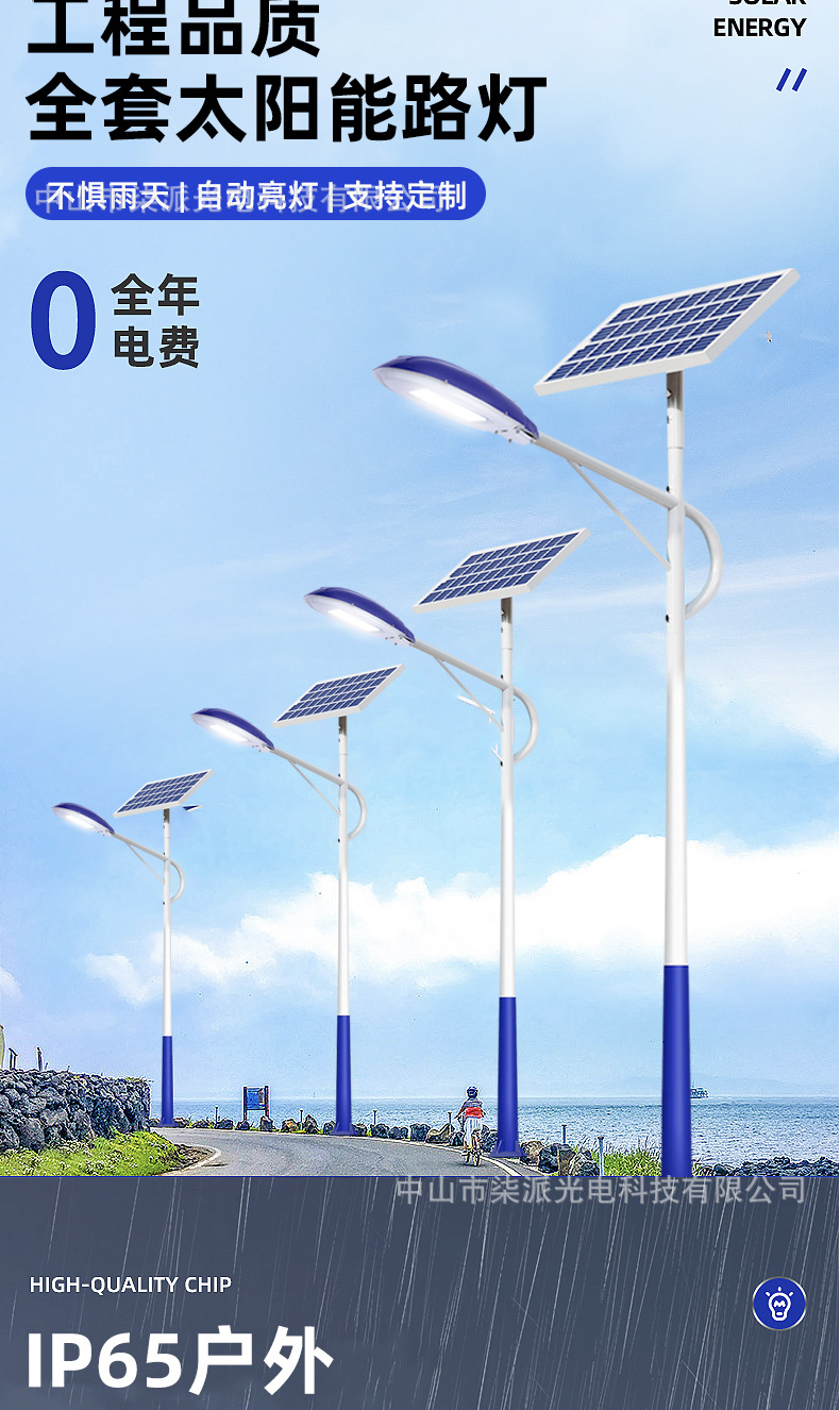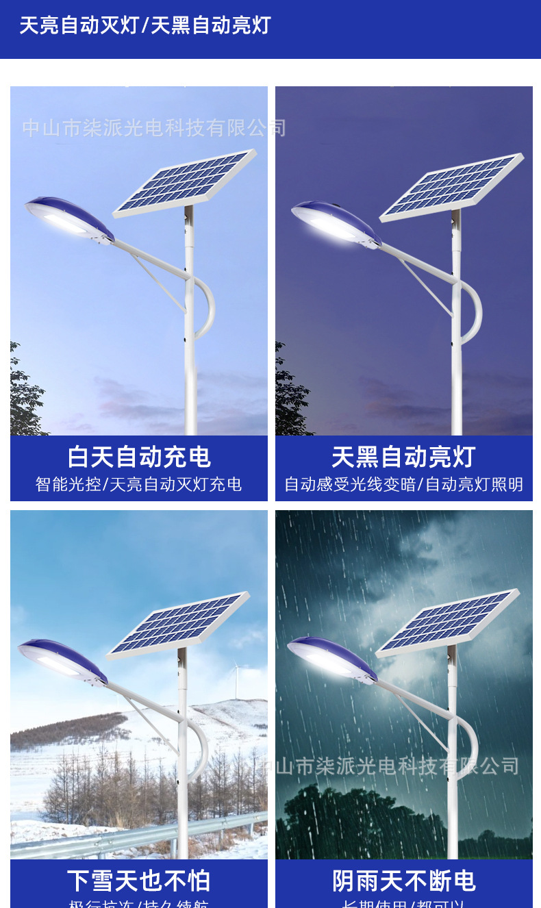 솔라 가로등 야외 방수 정원 조명 뉴 시골 6 미터 프로젝트 고출력 태양광 LED 가로등 도매