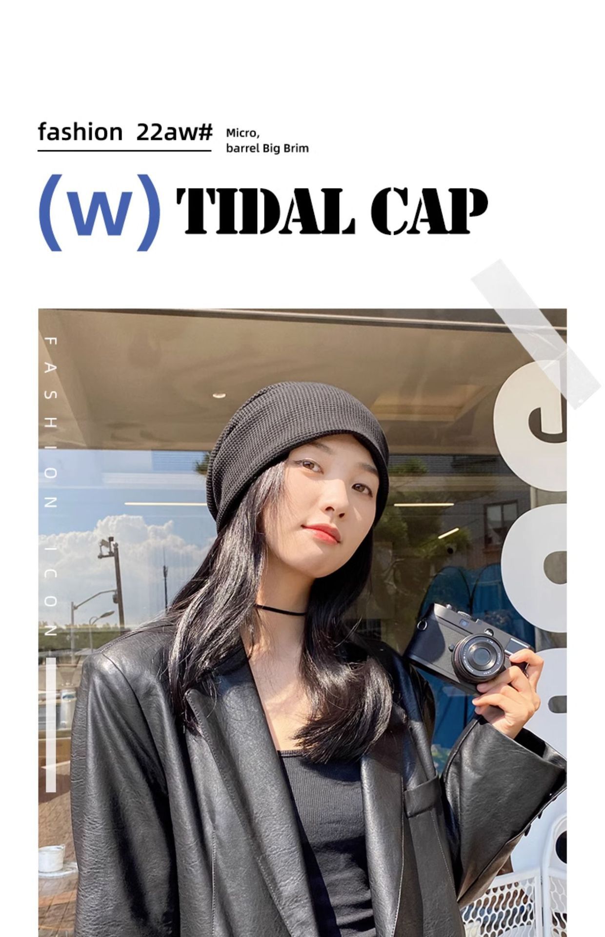 Ju Jungyi 같은 스타일 가을과 겨울 모자 여자의 힙 모자 큰 머리 둘레 일본 달 모자 얼굴을 보여주는 작은 차가운 모자 Baotou 모자스토어 가기