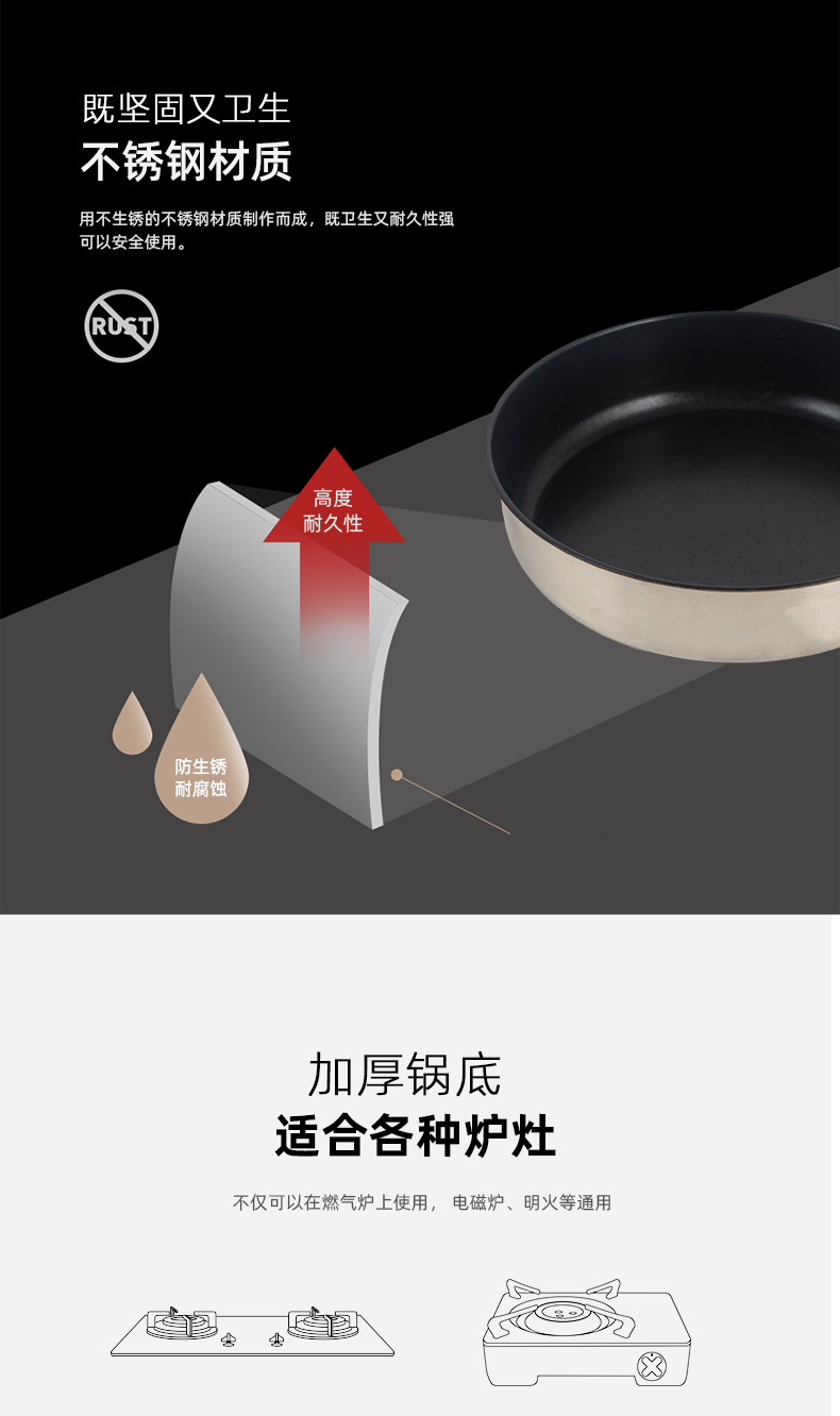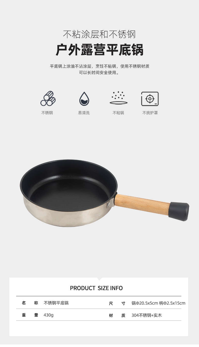 CLS 야외 캠핑 논스틱 팬 스테인레스 스틸 인덕션 쿠커 가스 범용 피크닉 휴대용 프라이팬