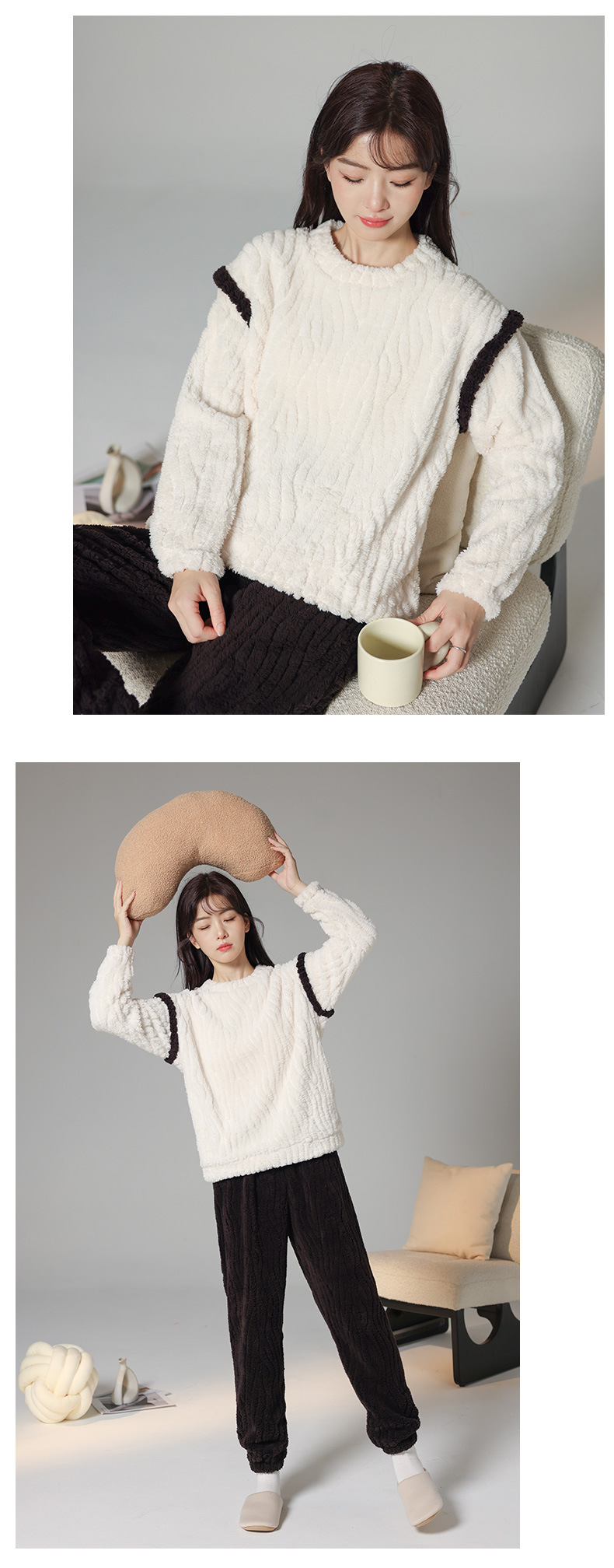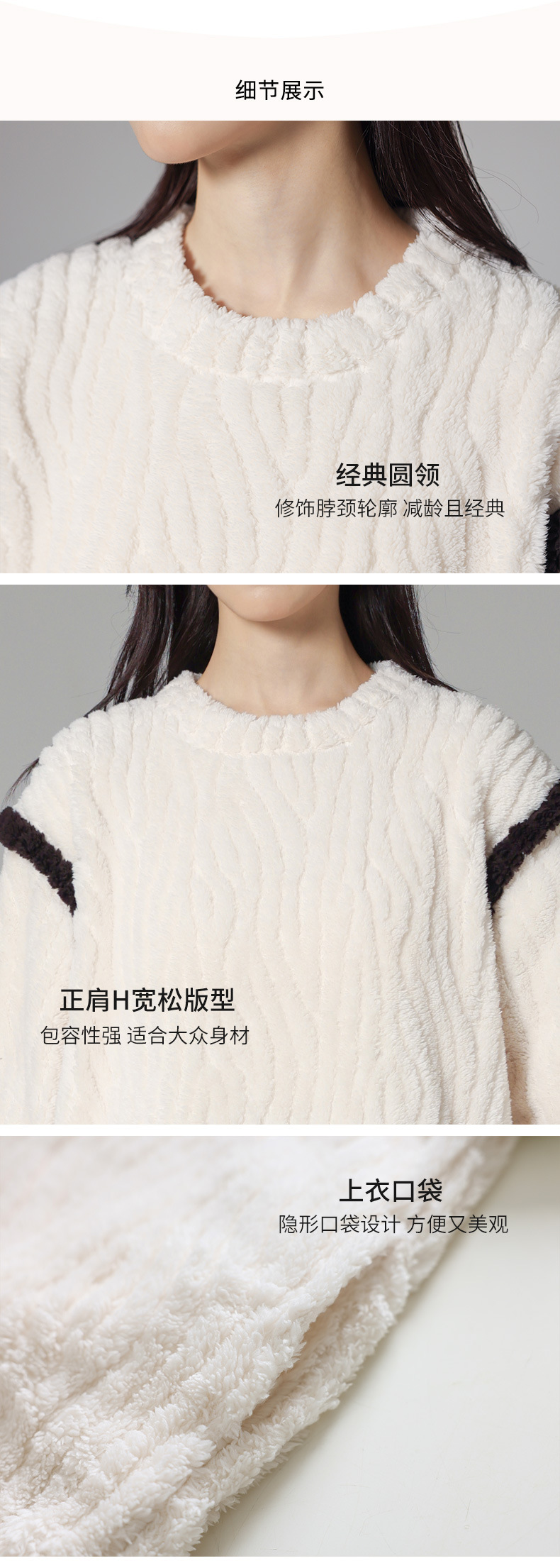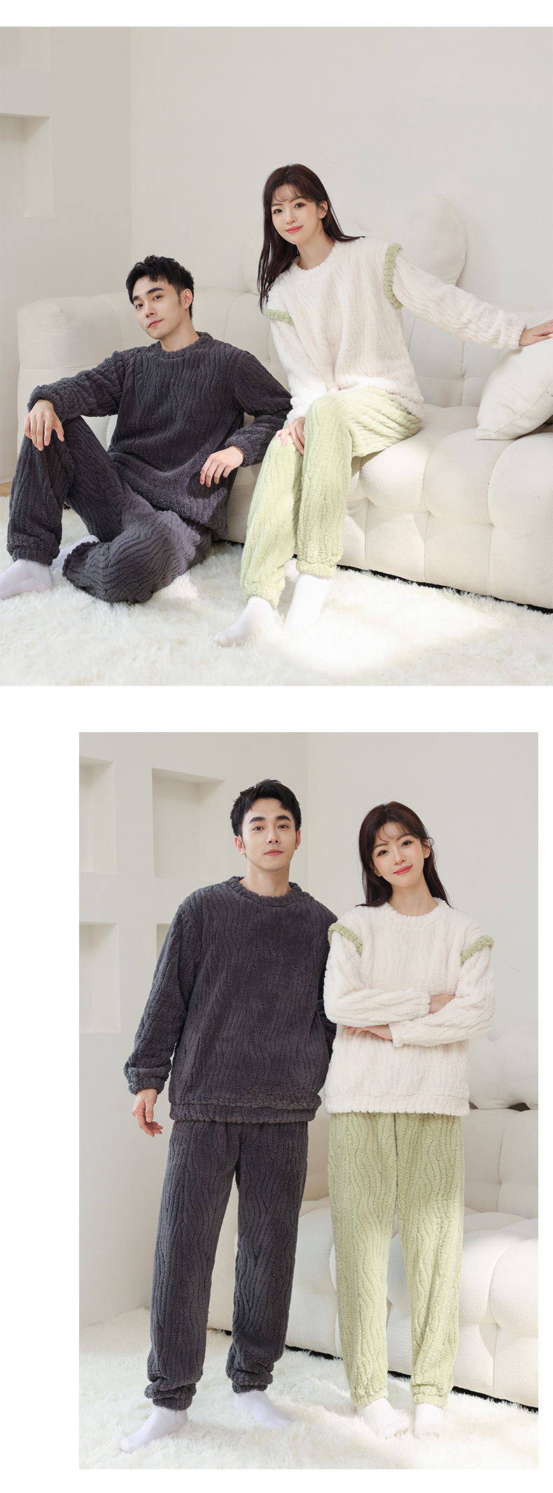 가을과 겨울 커플 잠옷 풀오버 산호 양털 자카드 심플 솔리드 컬러 남성용 라운드 넥 여성용 컬러 매칭 따뜻한 가정 옷 세트스토어 가기