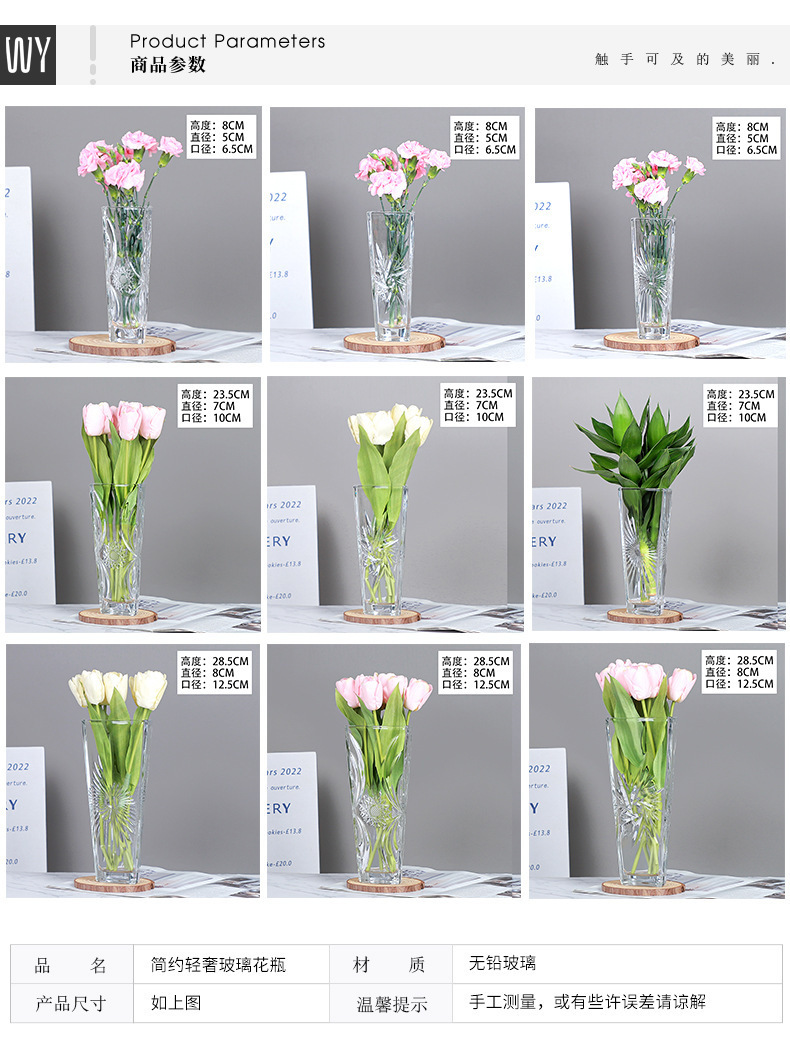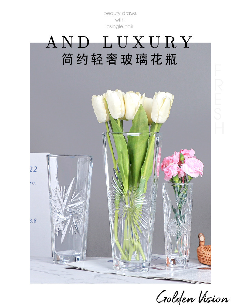 대형 유리 꽃병 수경 풍부한 대나무 장식품 스타일 창조적 인 꽃병 고급 거실 부드러운 꽃 배열