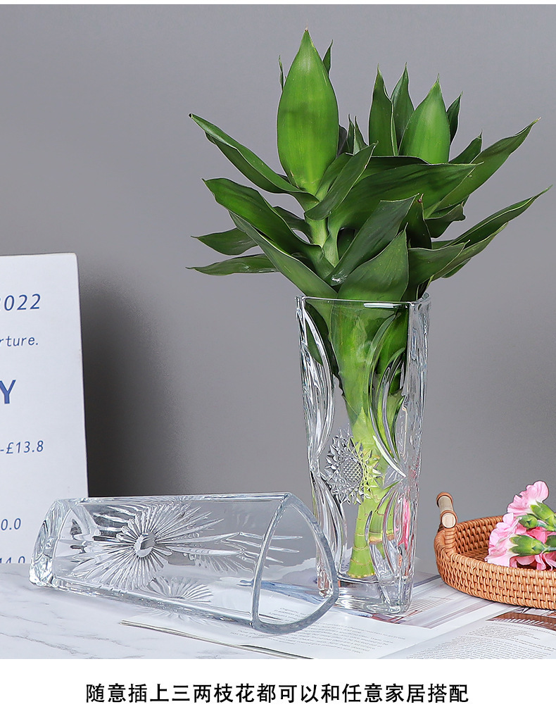 대형 유리 꽃병 수경 풍부한 대나무 장식품 스타일 창조적 인 꽃병 고급 거실 부드러운 꽃 배열스토어 가기