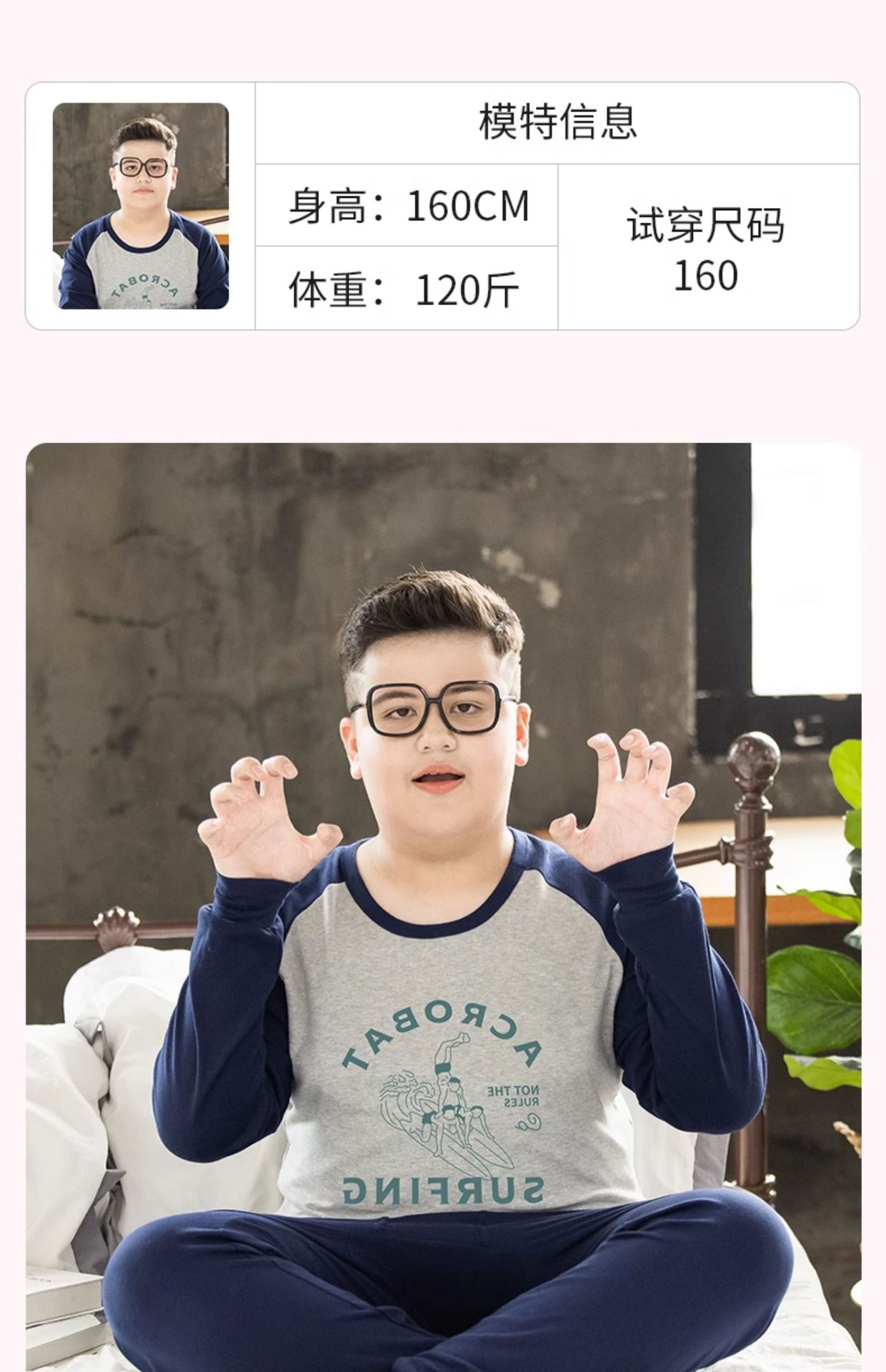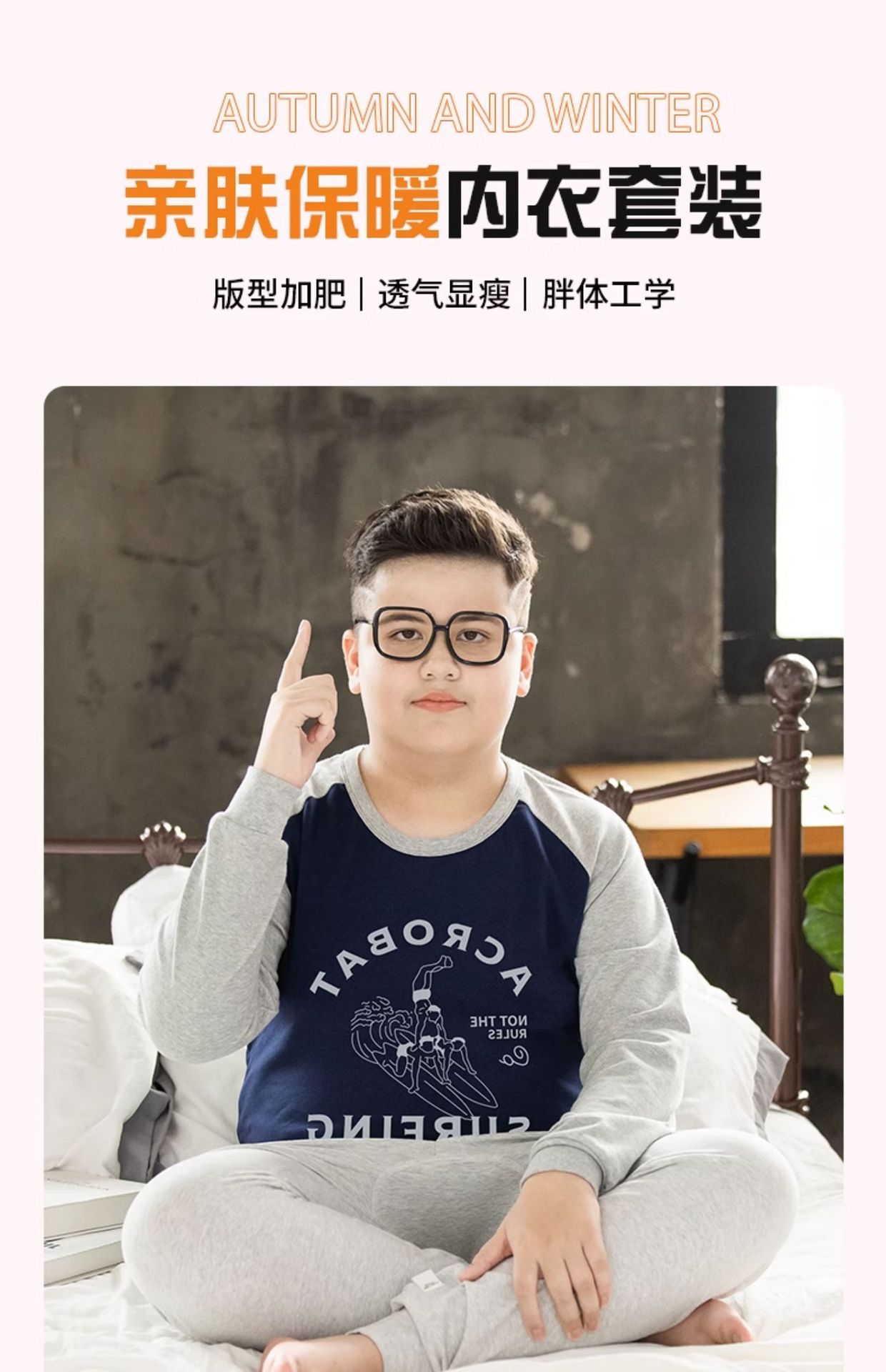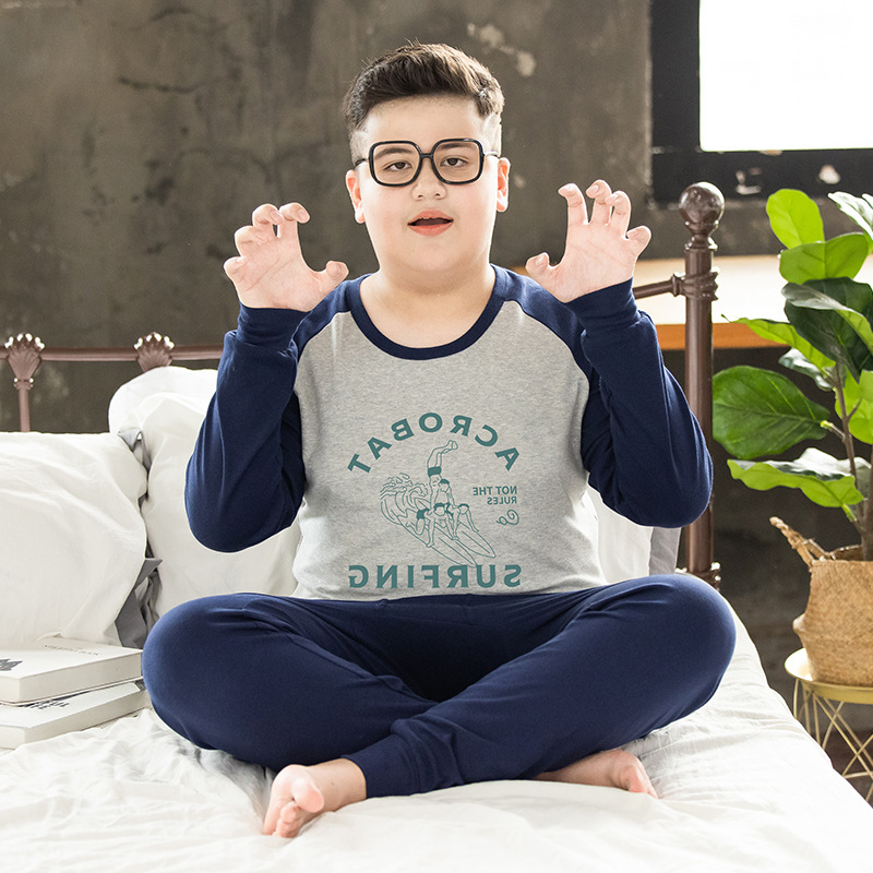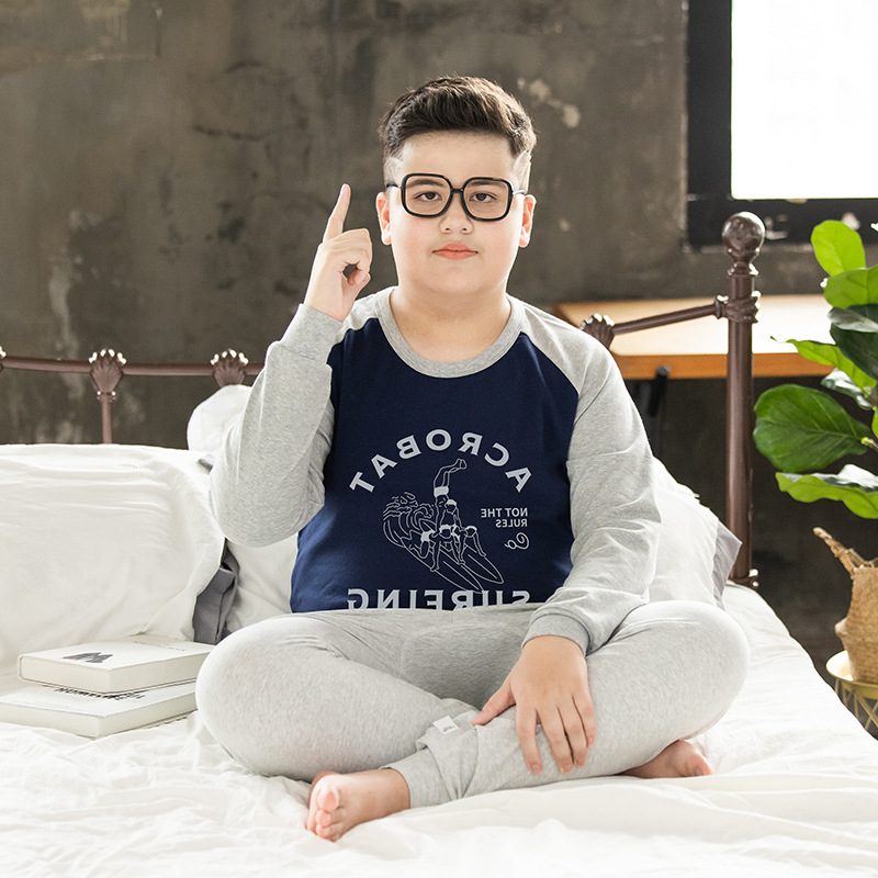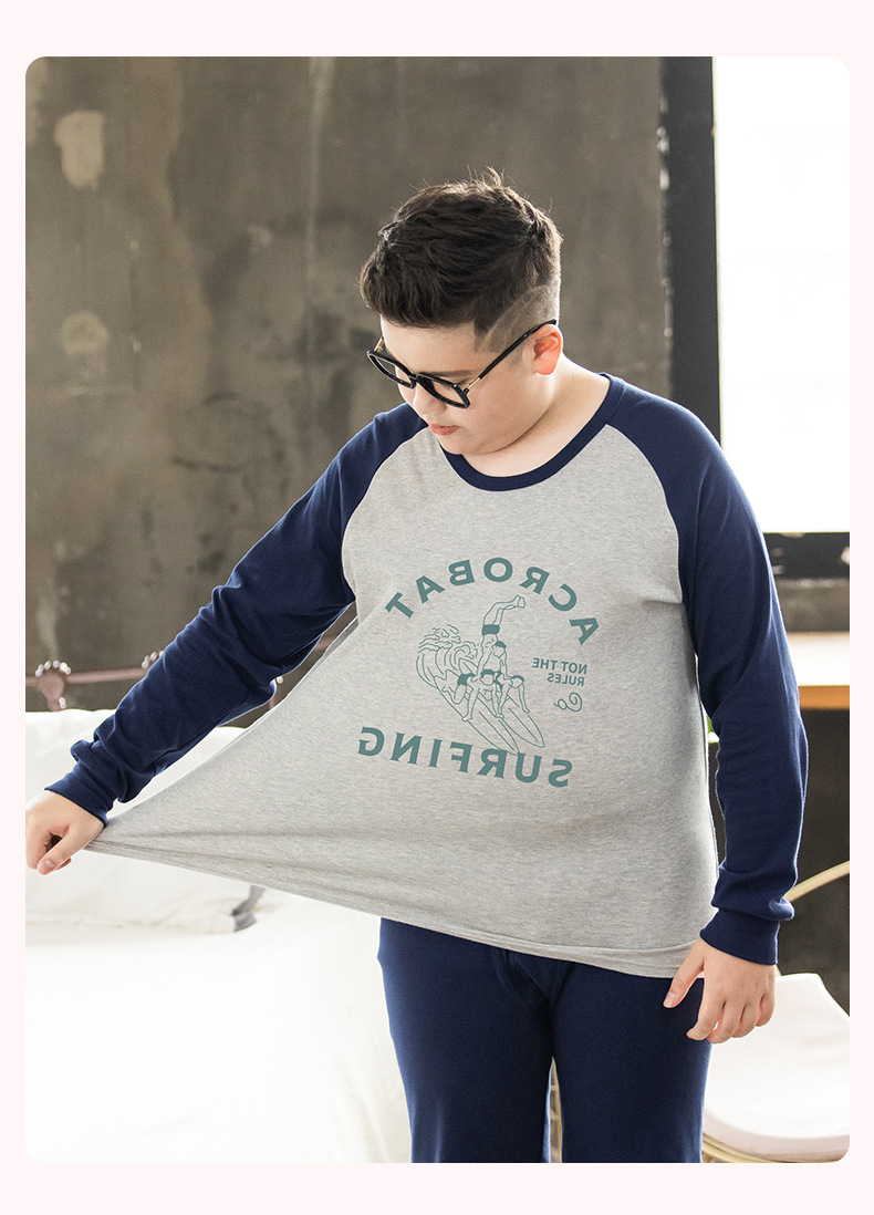 뚱뚱한 어린이 착용 소년 플러스 뚱뚱한 초대형 속옷 세트 가을 따뜻한 잠옷 큰 어린이 플러스 뚱뚱한 초대형 가을 옷과 바지스토어 가기