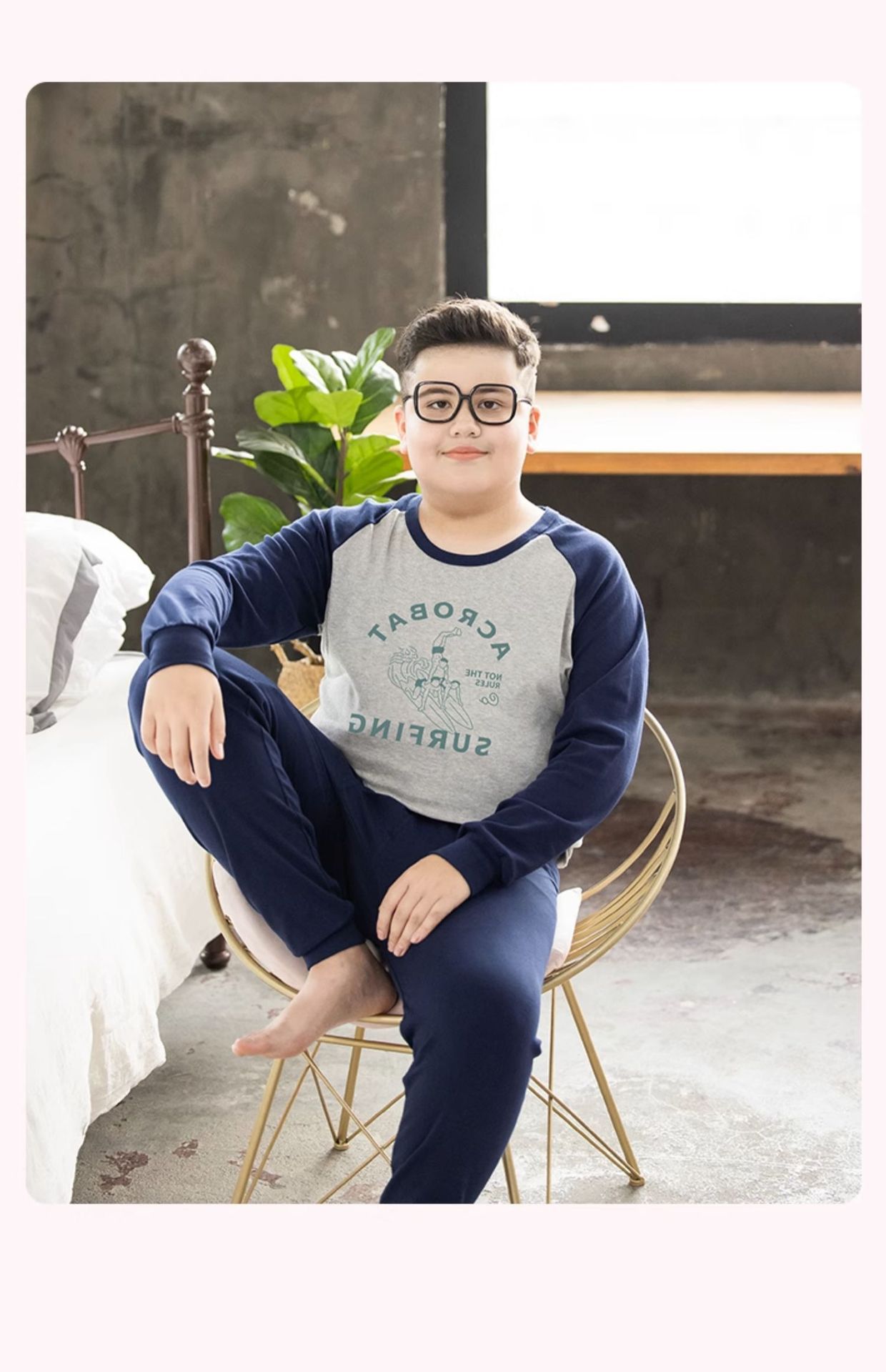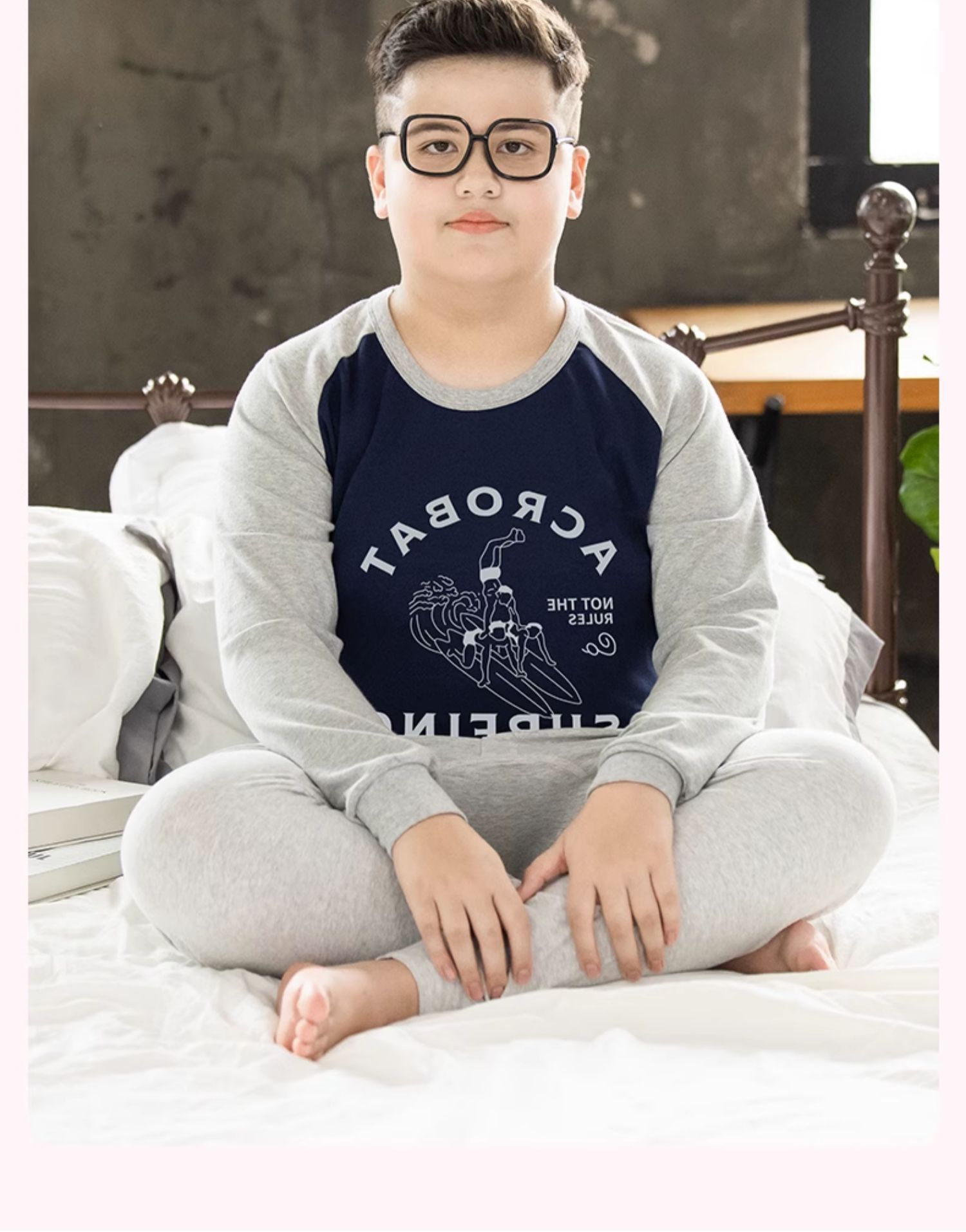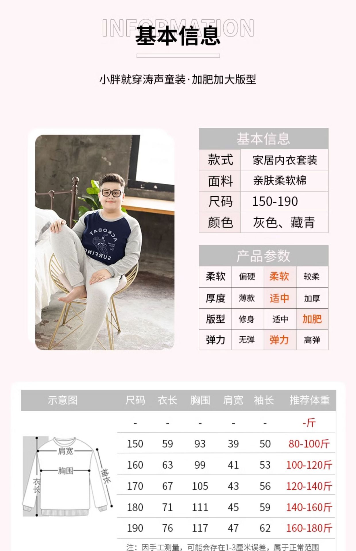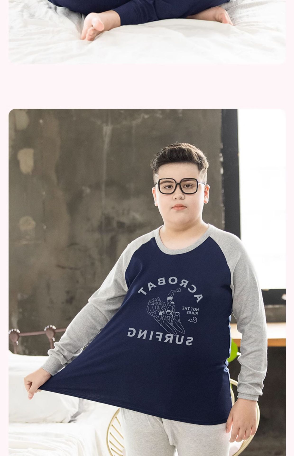 뚱뚱한 어린이 착용 소년 플러스 뚱뚱한 초대형 속옷 세트 가을 따뜻한 잠옷 큰 어린이 플러스 뚱뚱한 초대형 가을 옷과 바지스토어 가기