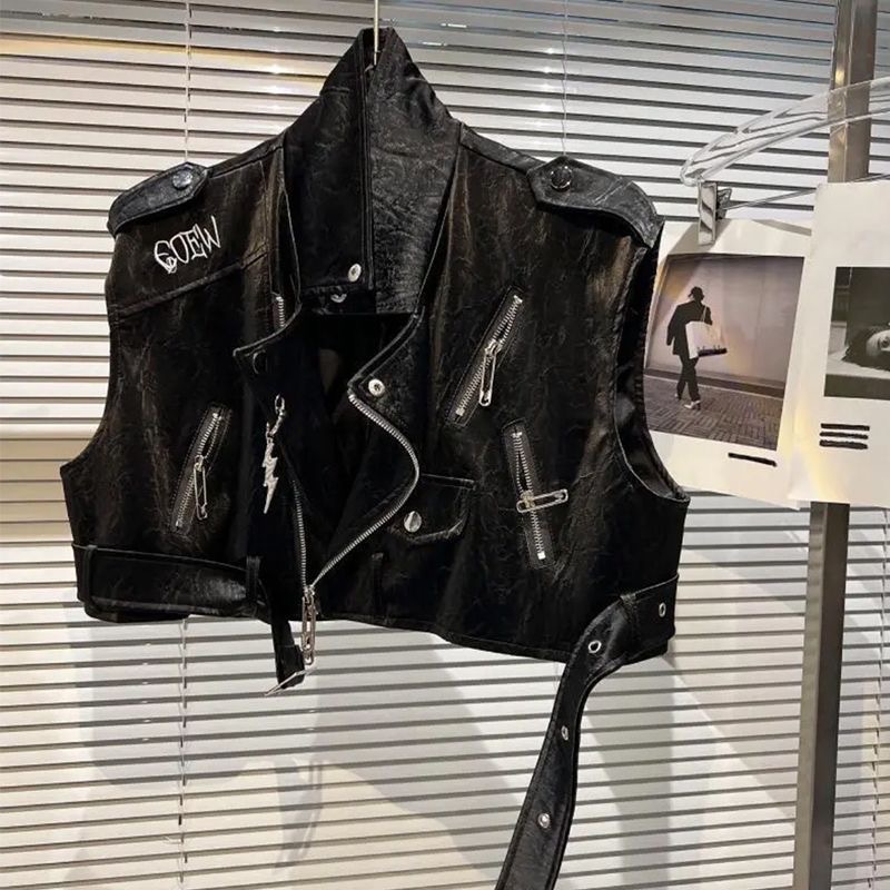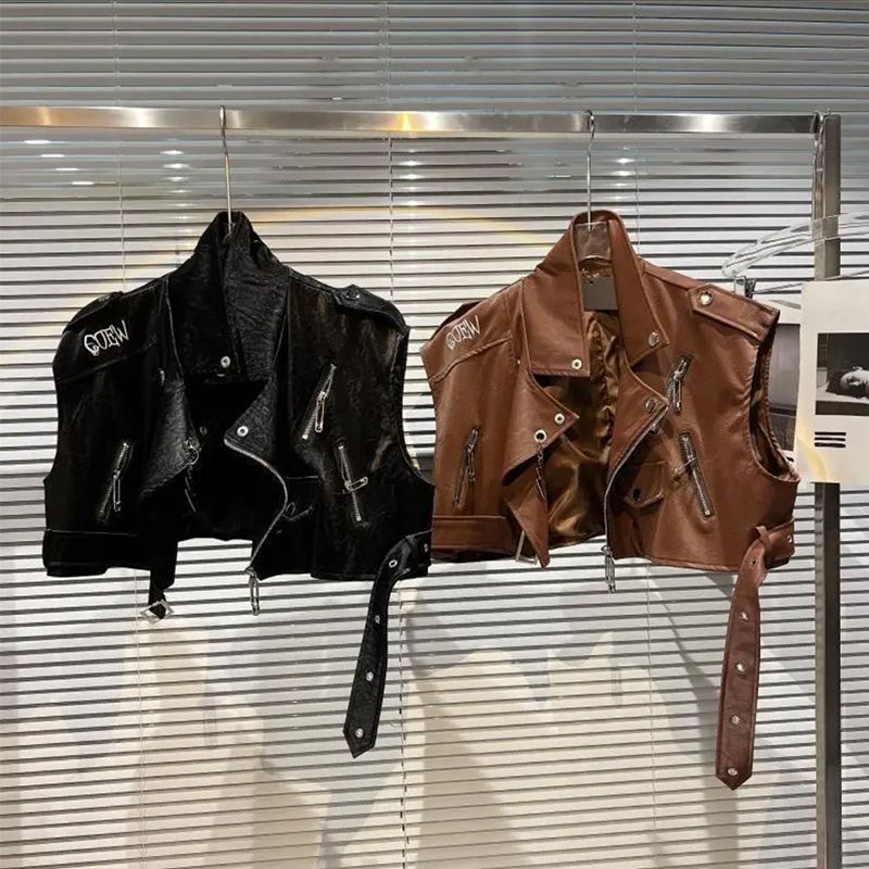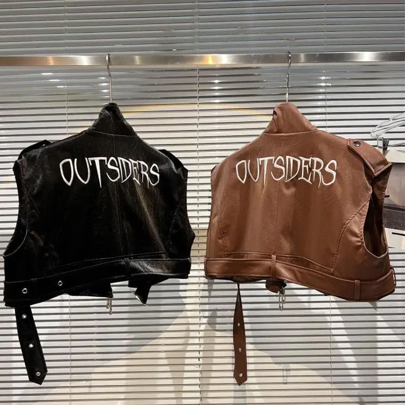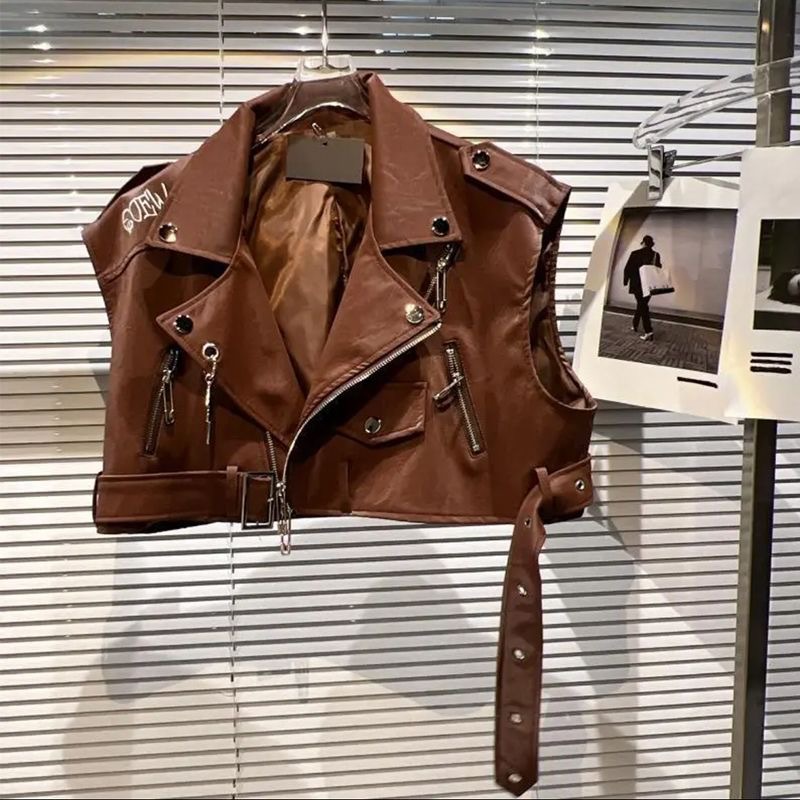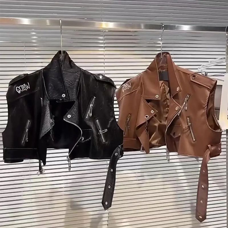 여아 가을 신상 가죽 조끼 2025년형 뒷면 자수 PU 페이턴트 가죽 바이커 조끼 패션 트렌드스토어 가기