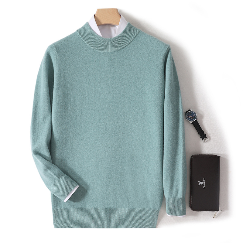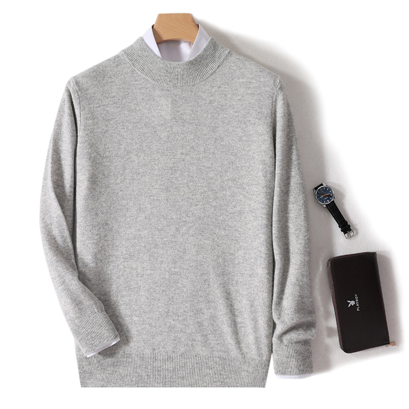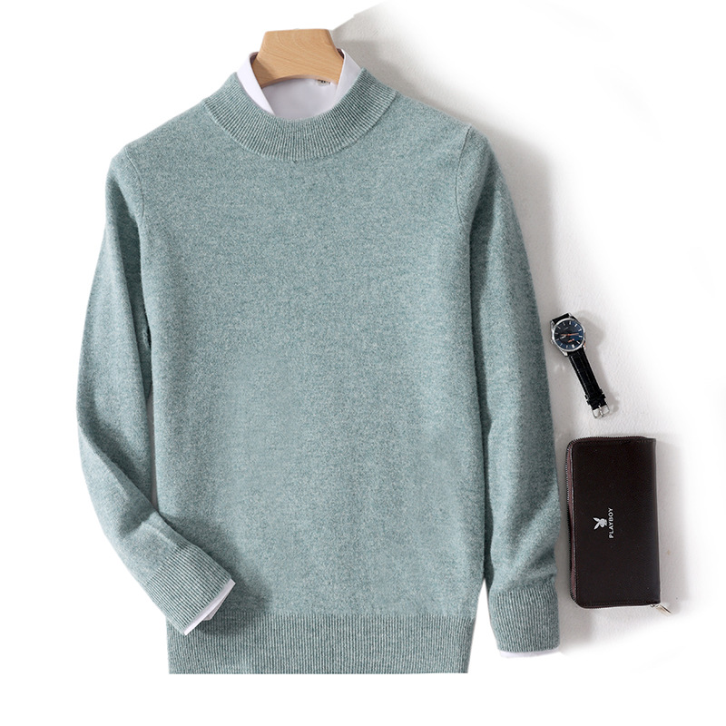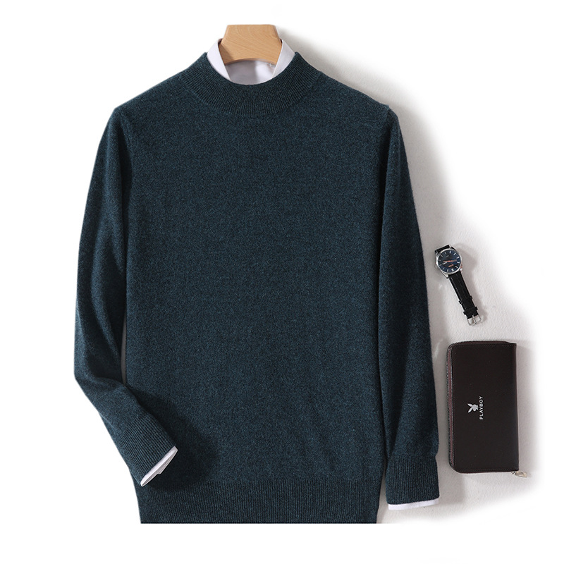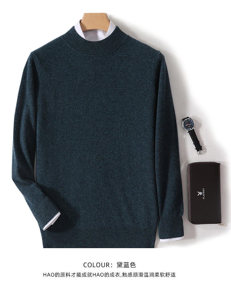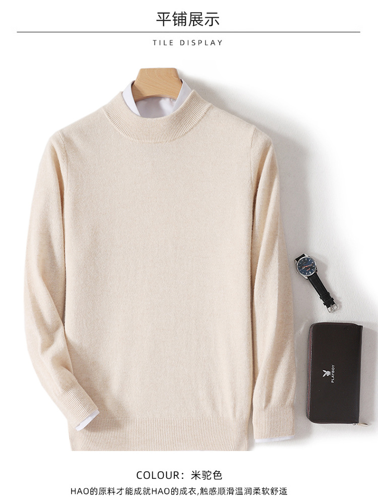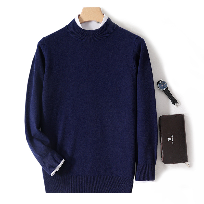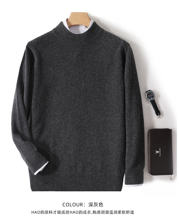 가을과 겨울 하프 터틀넥 울 스웨터 남성용 단색 풀오버 모든 경기 스웨터 비즈니스 캐주얼 캐시미어 니트 베이스 셔츠