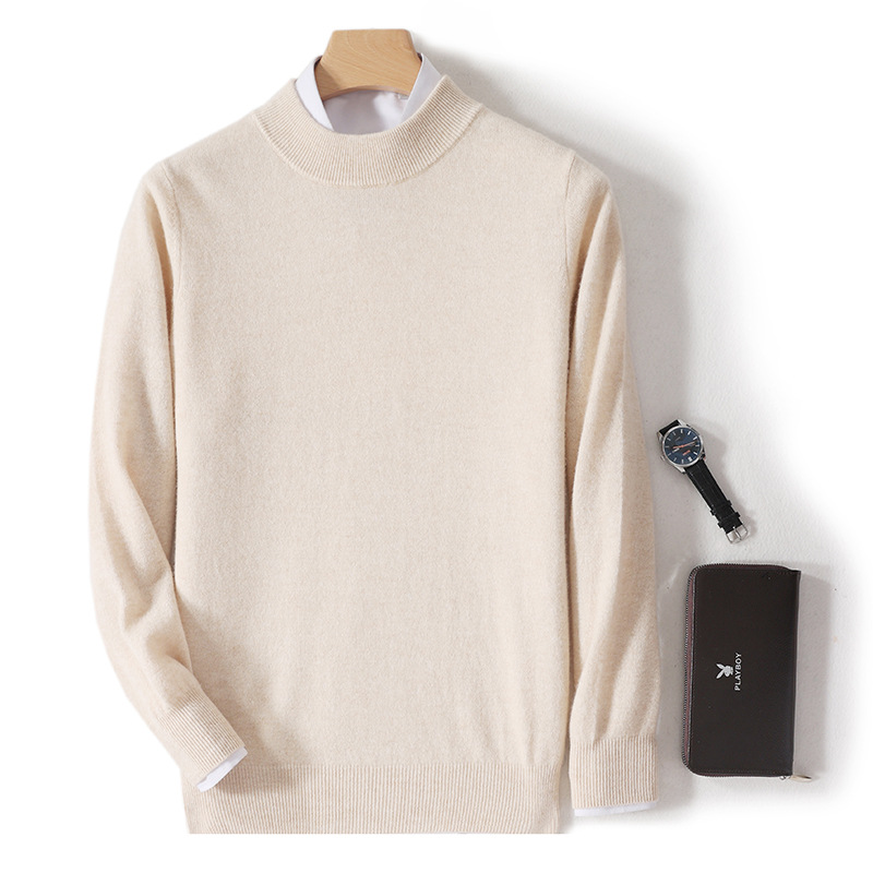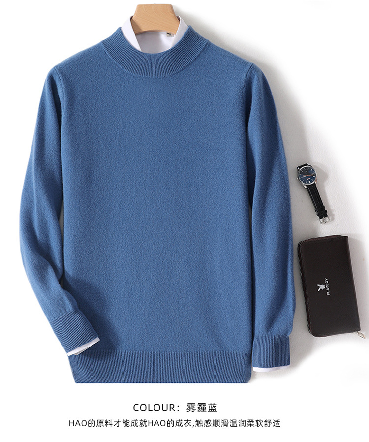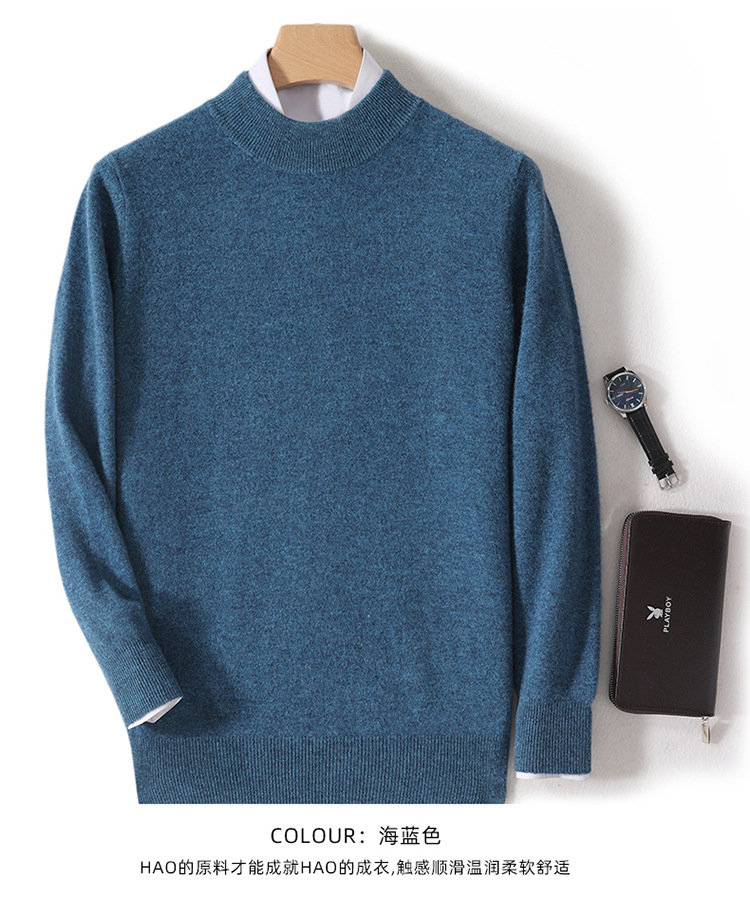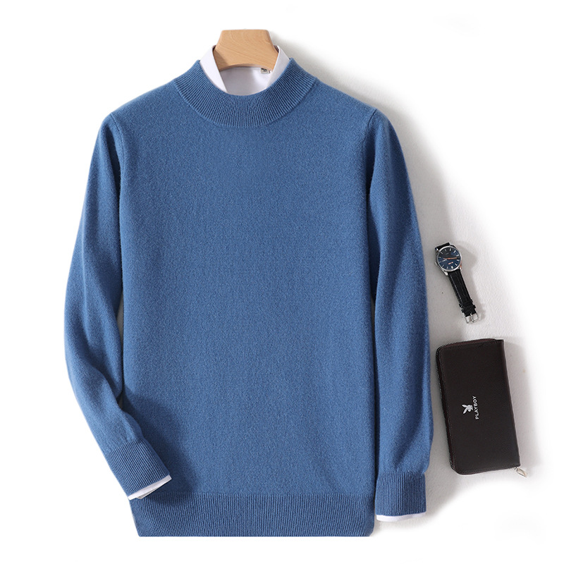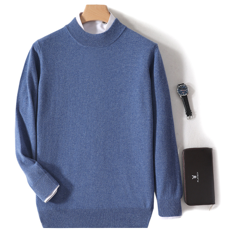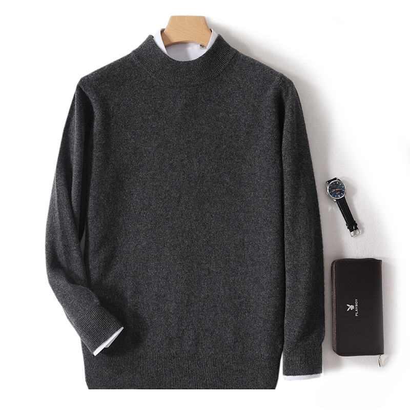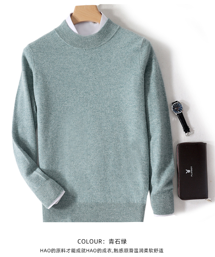 가을과 겨울 하프 터틀넥 울 스웨터 남성용 단색 풀오버 모든 경기 스웨터 비즈니스 캐주얼 캐시미어 니트 베이스 셔츠